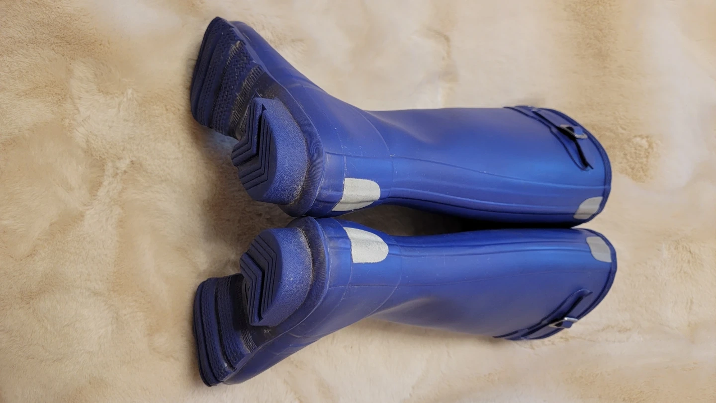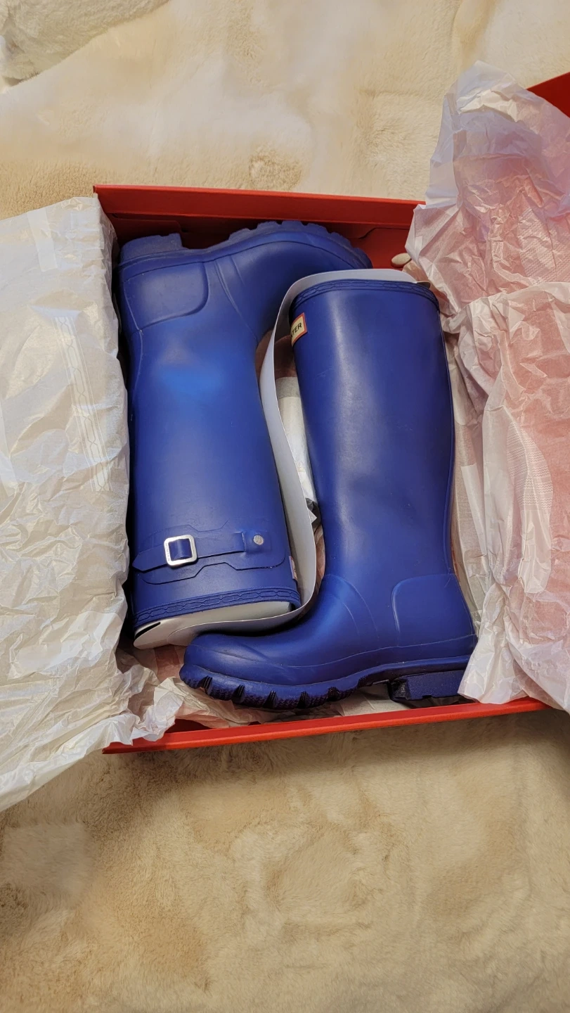 29Famous Hunter Original Rain boots. Combines functionality with classic style. Made from durable waterproof rubber. The iconic tall design ensures maximum coverage and protection against the elements. Cushioned insole and sturdy outsole for enhanced grip. Size 5G. Comes with original box. Cash only.