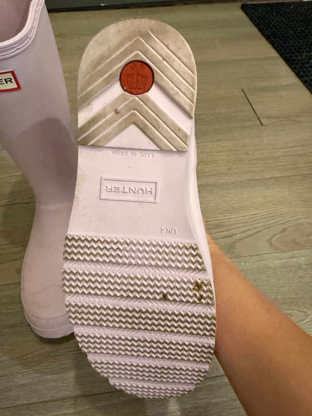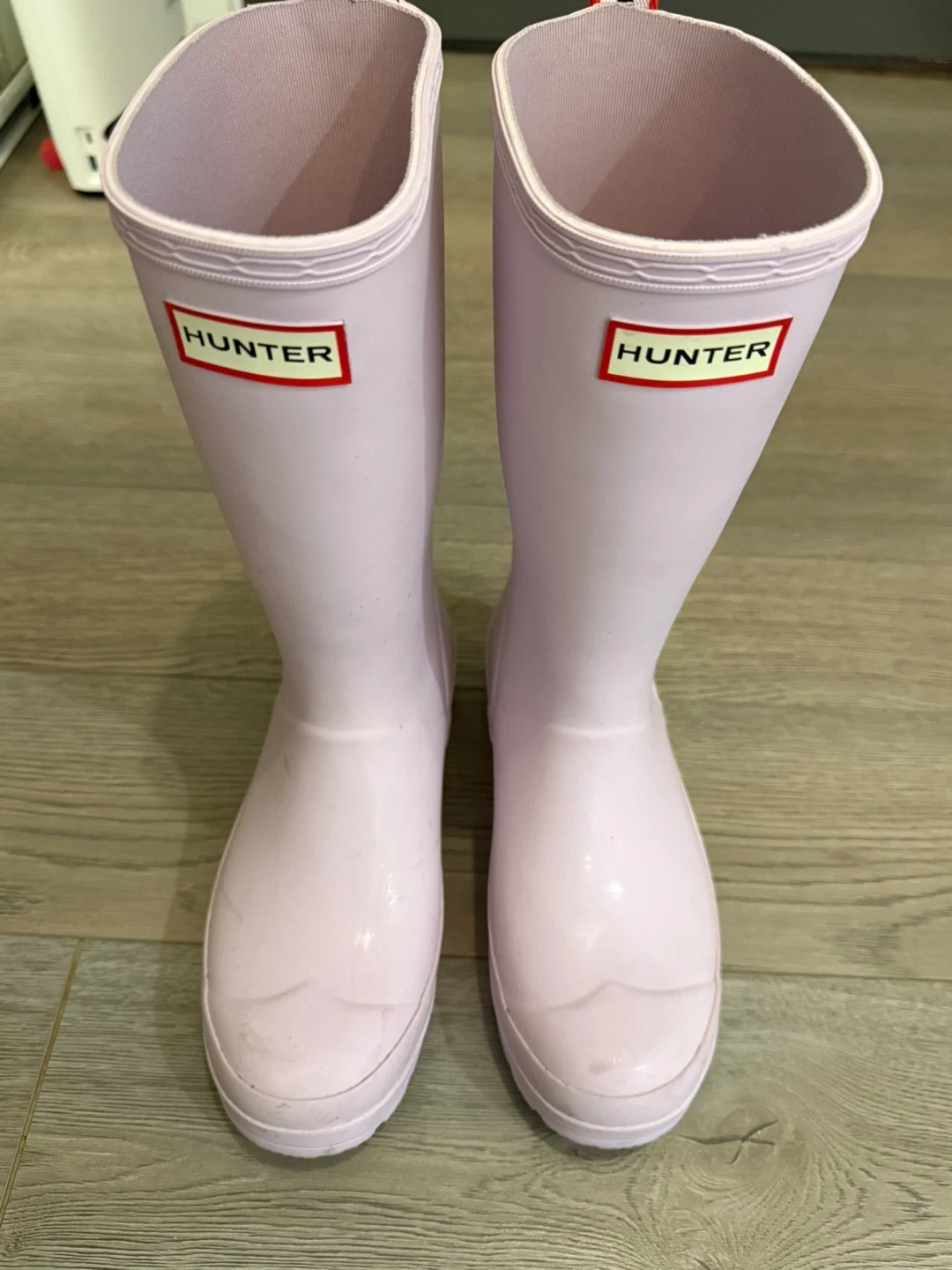 Hunter Kids First Classic Rain Boots in a lovely lilac colour! These are a UK size 4 and are in good condition with some signs of wear