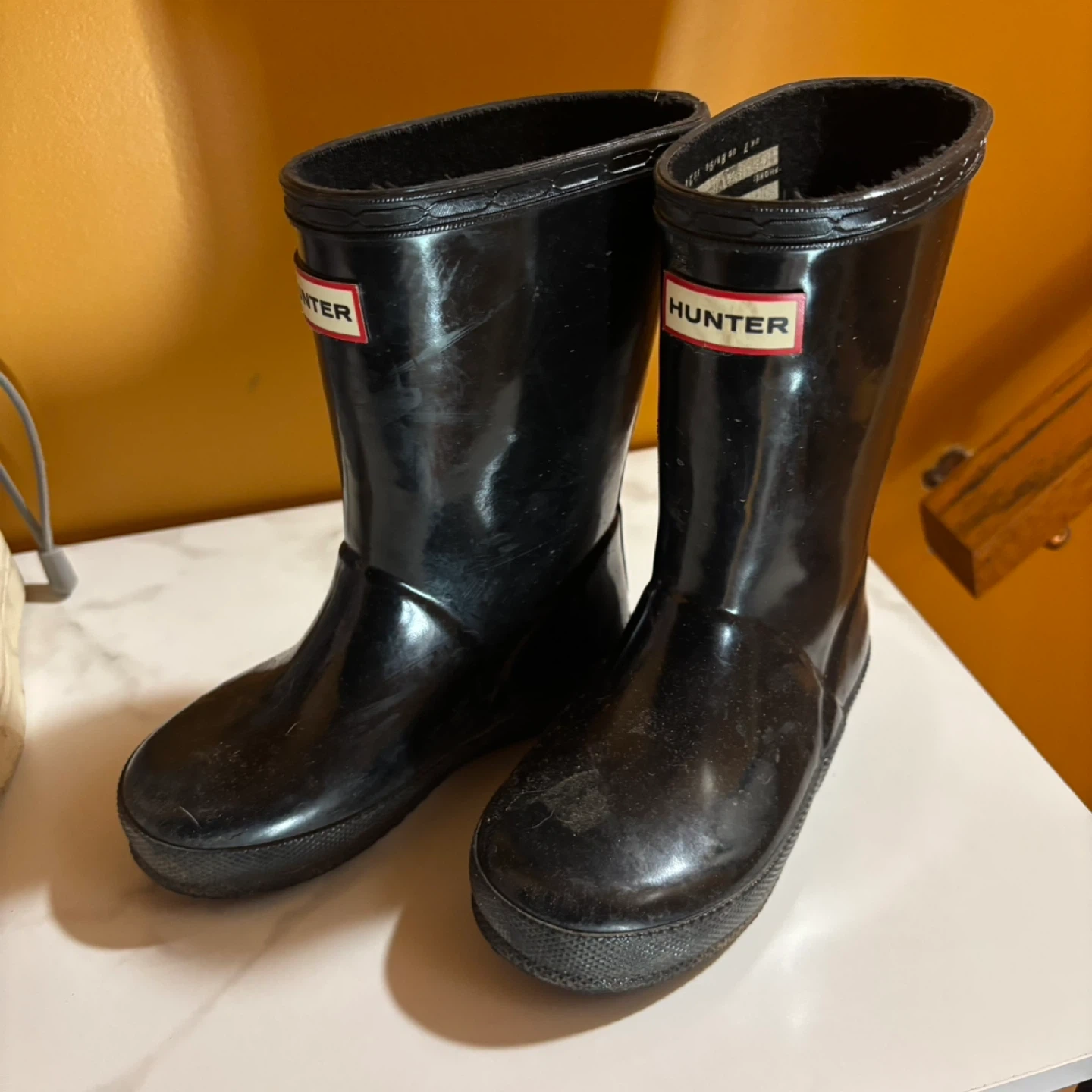 27Selling a pair of Hunter kids rain boots in US size 8. They're in great condition and perfect for puddle jumping! The boots are black and have the classic Hunter logo on the front. Open to bundle offers with other things from my listings :)