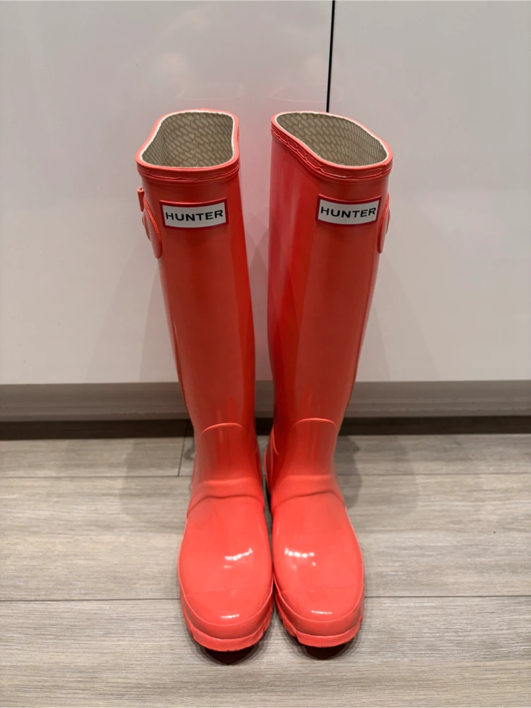 Selling a pair of Hunter Original Tall Rain Boots in a vibrant coral colour! These boots are in great condition—barely worn, and are a women's size 5 but the fitting is larger. Perfect for rainy days or adding a pop of colour to your outfit! Pick up is in willoughby. Please bring cash