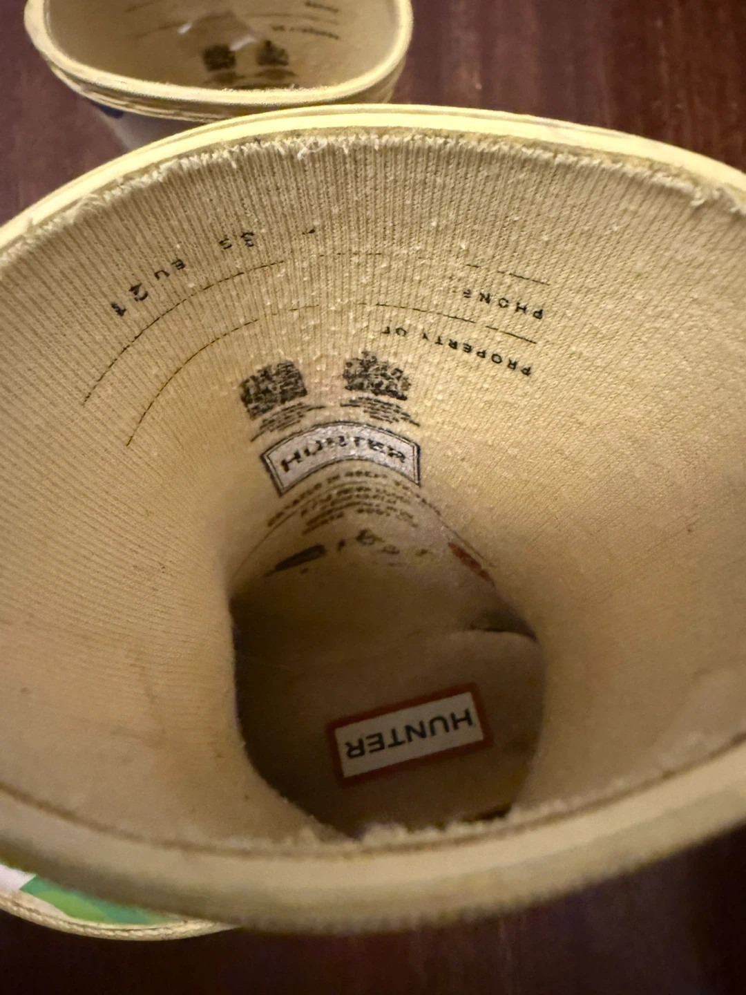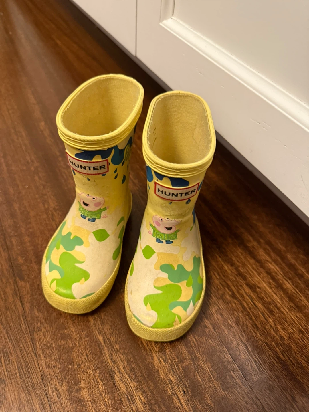 600These adorable Hunter rain boots feature a fun Peppa Pig design! They are in good condition Size UK4.