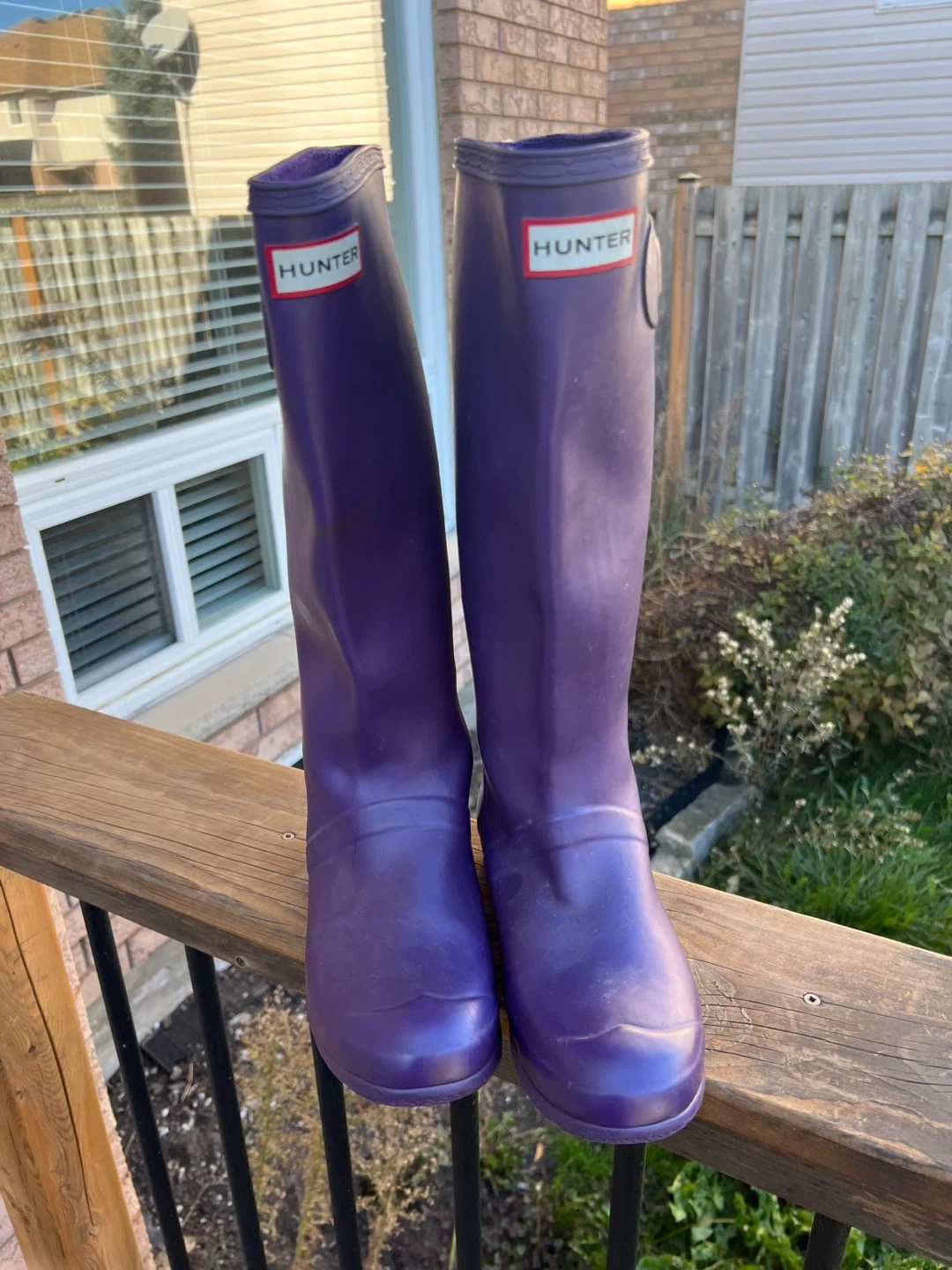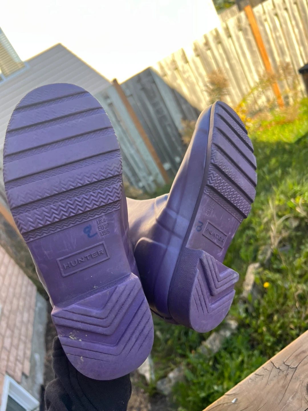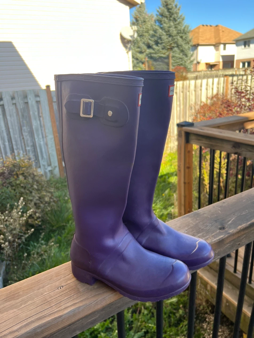 86Selling a pair of Hunter rain boots in a lovely purple colour! They are a women's size 6!Great for rainy days and keeping your feet dry and stylish