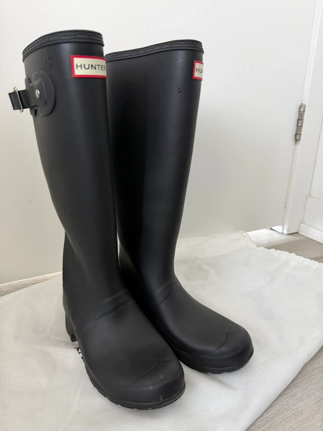Selling a pair of Hunter rain boots in black! They're in great condition and ready to keep your feet dry on those rainy days. The size is women's US 6.