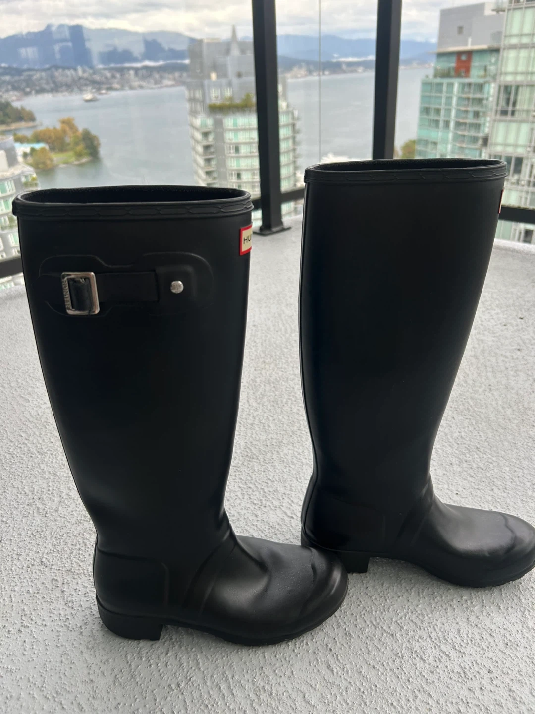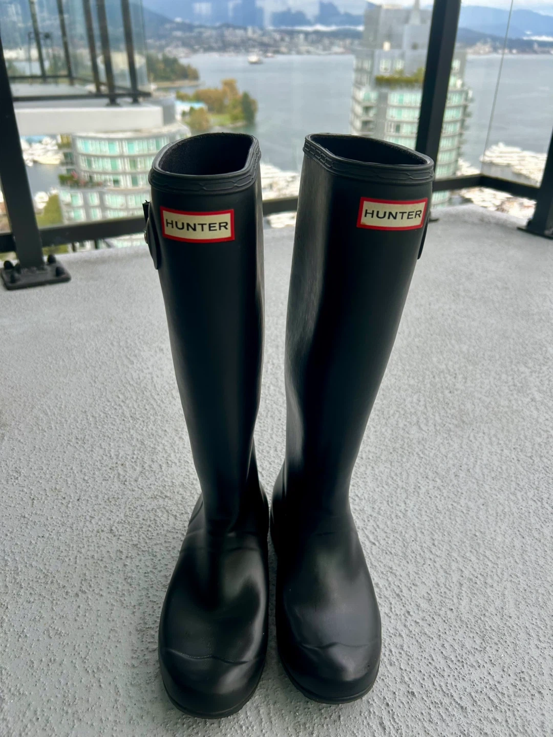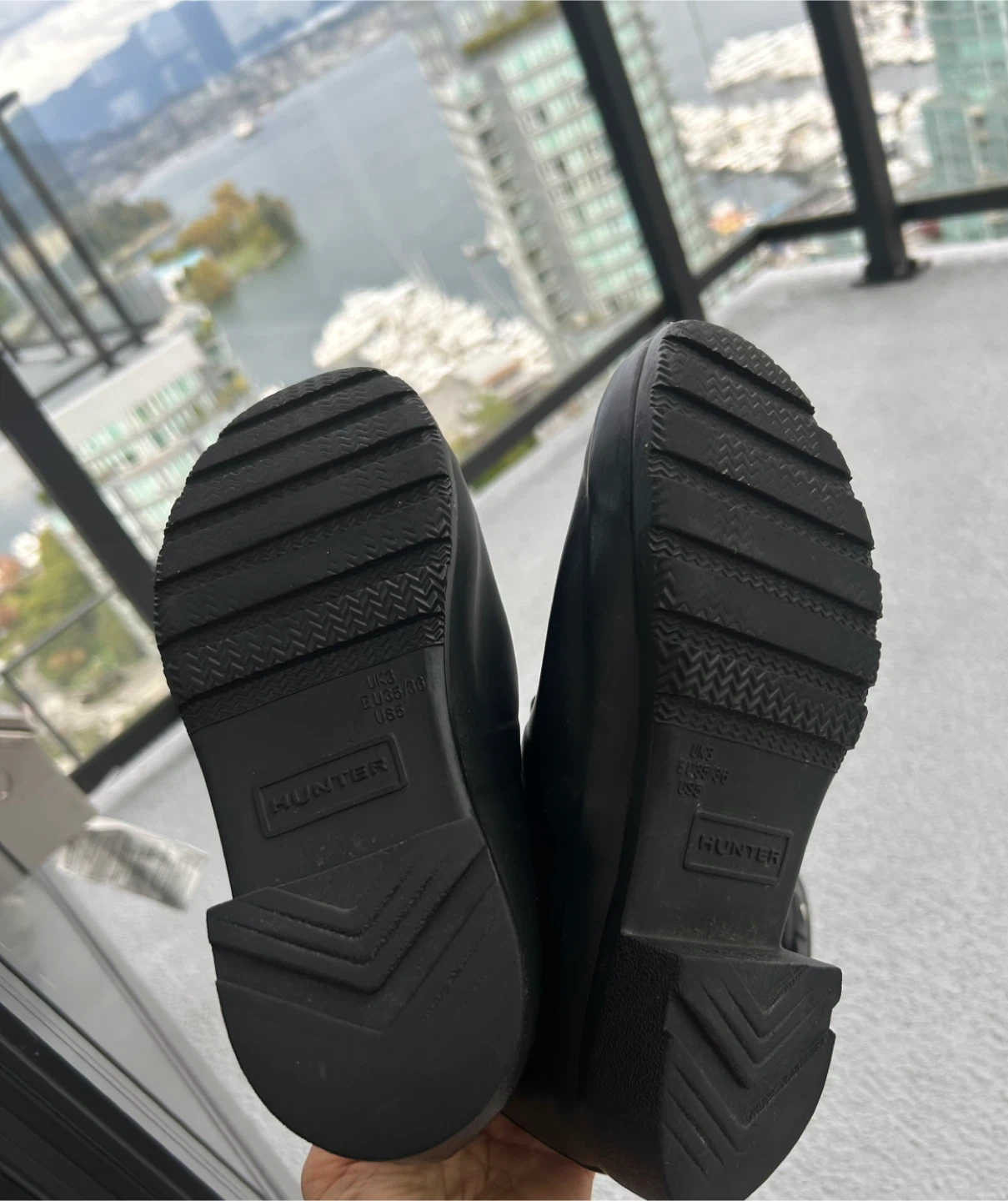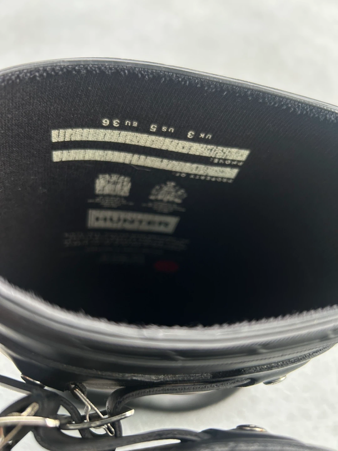Selling a pair of Hunter rain boots in black! They are a size US 5 / UK 3 / EU 36. Great for rainy days!