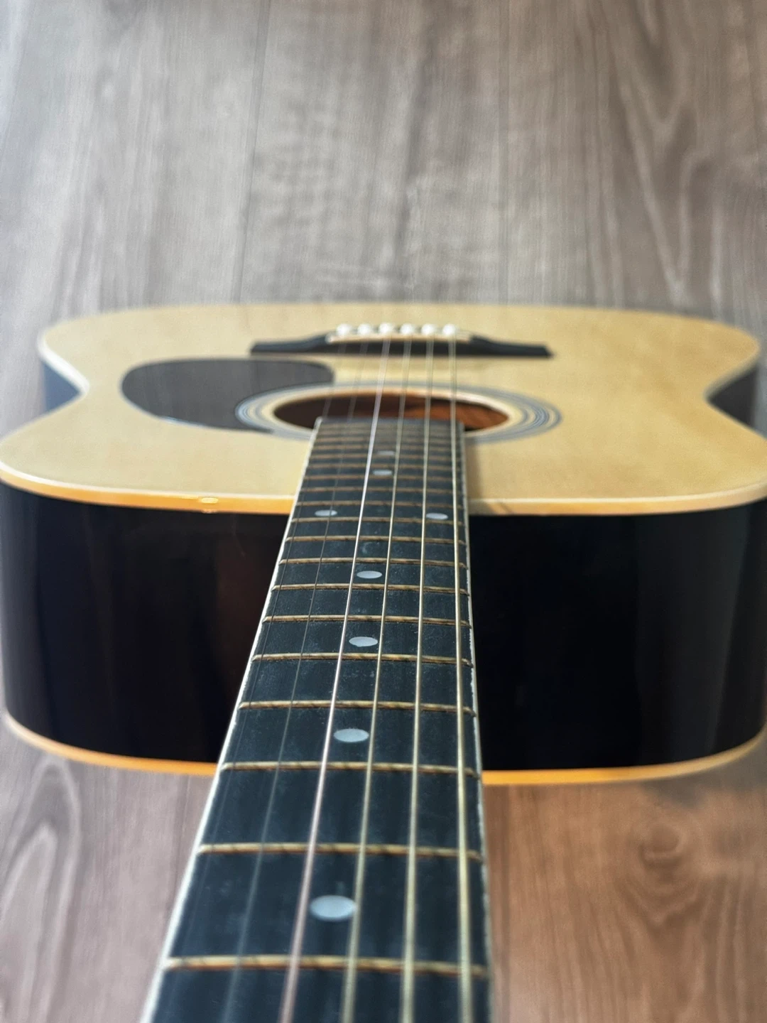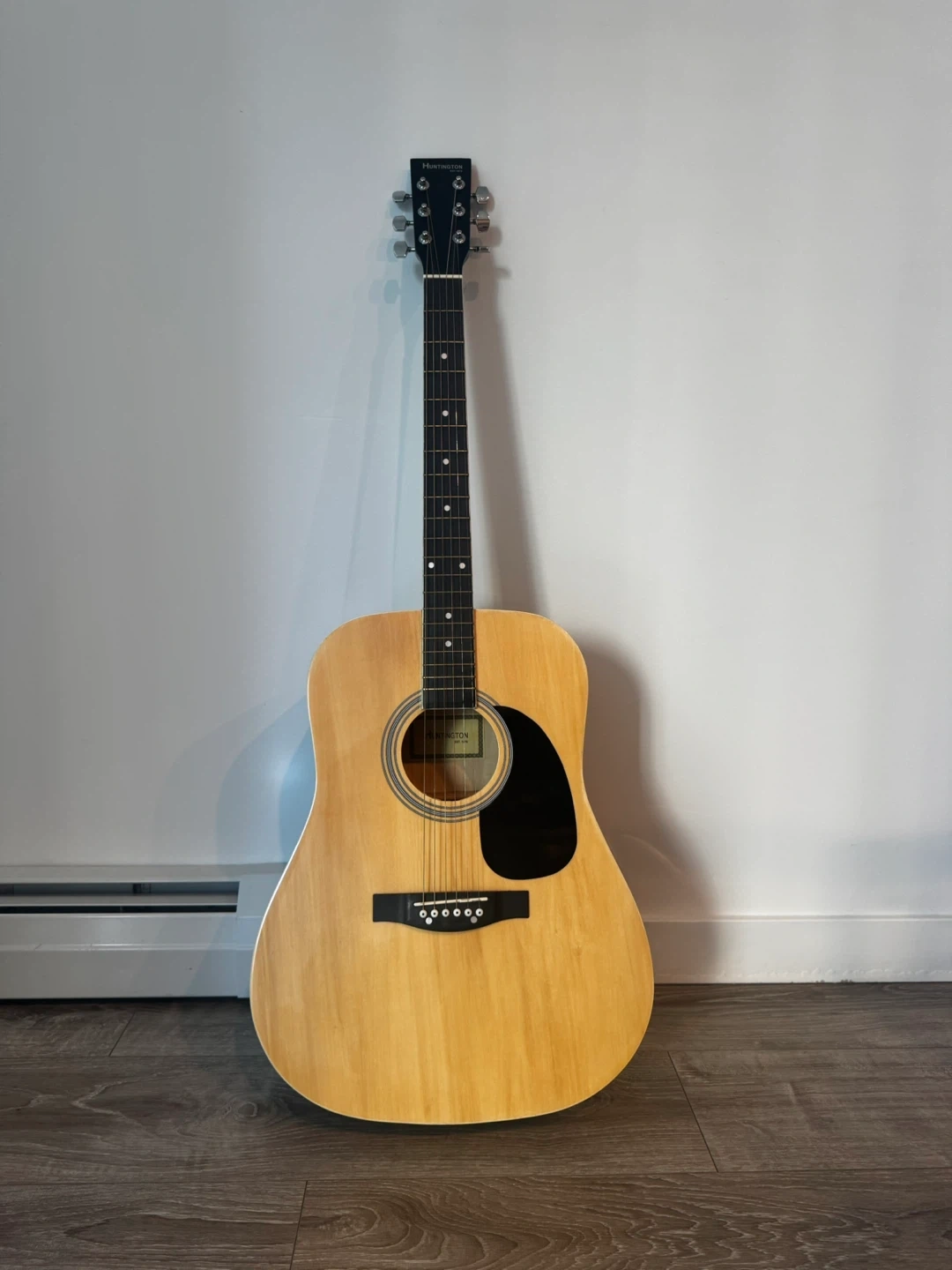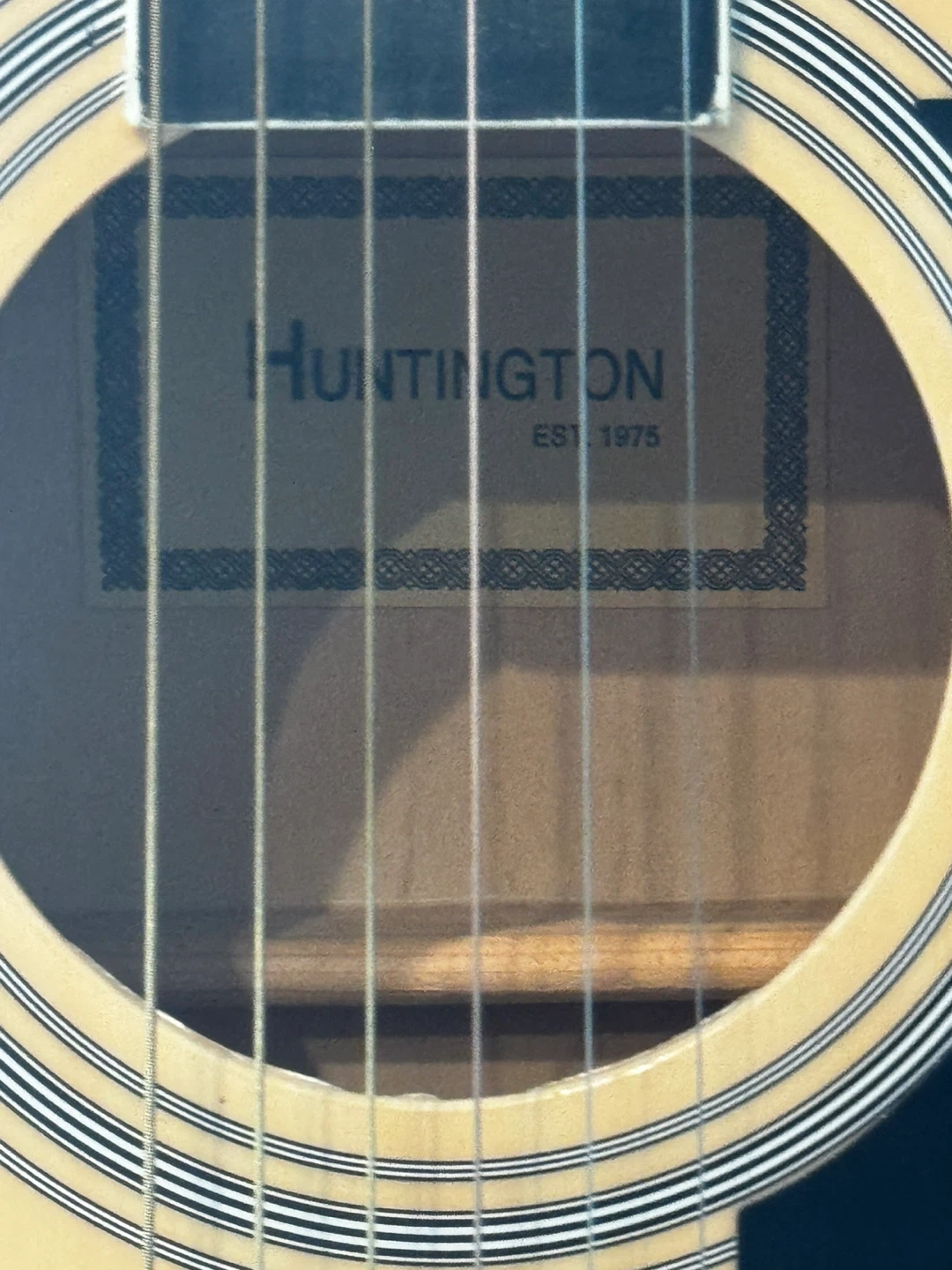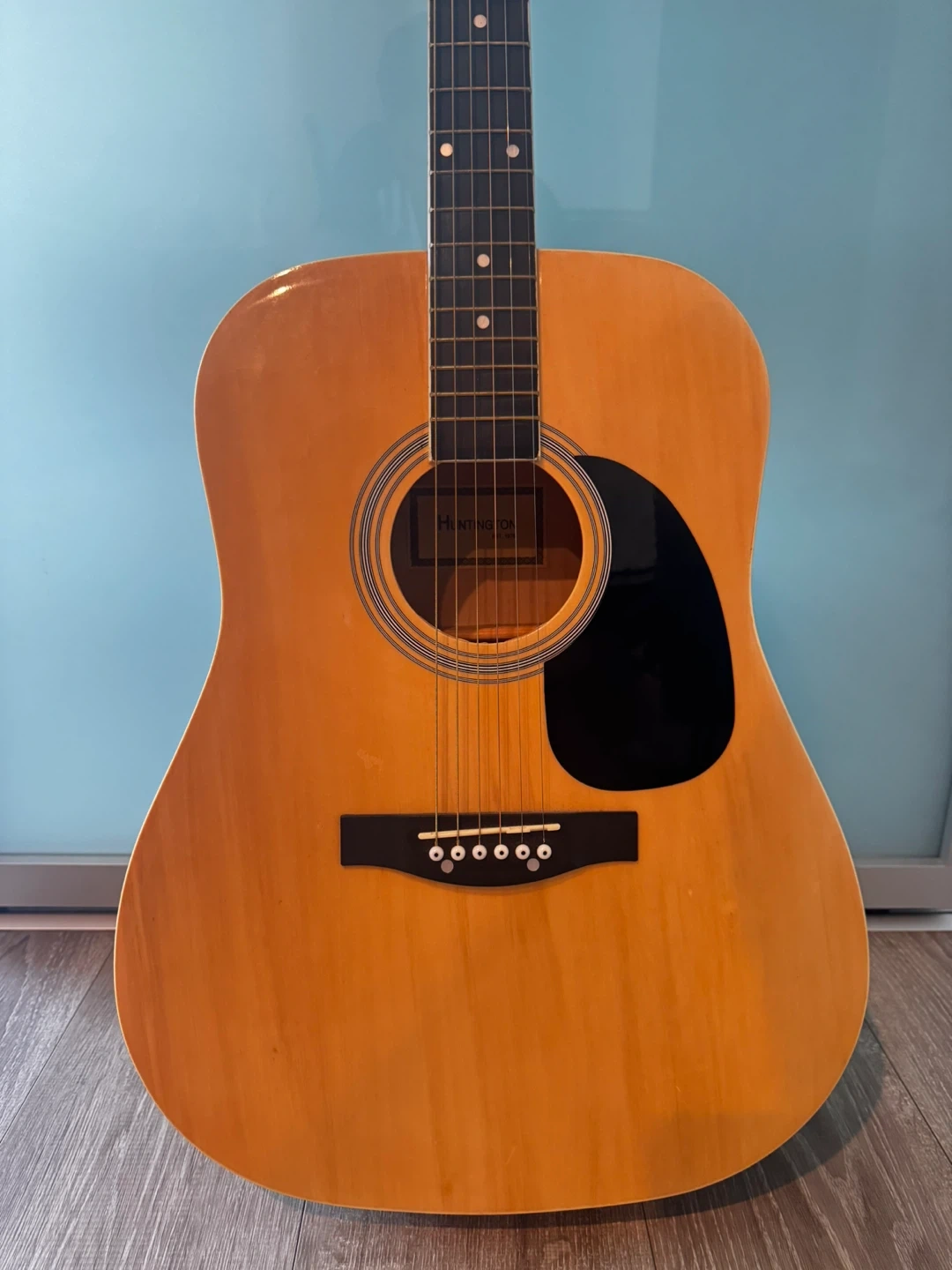 Acoustic guitar by Huntington. Great for beginners or anyone looking for a reliable instrument! It's in good condition and ready to be played