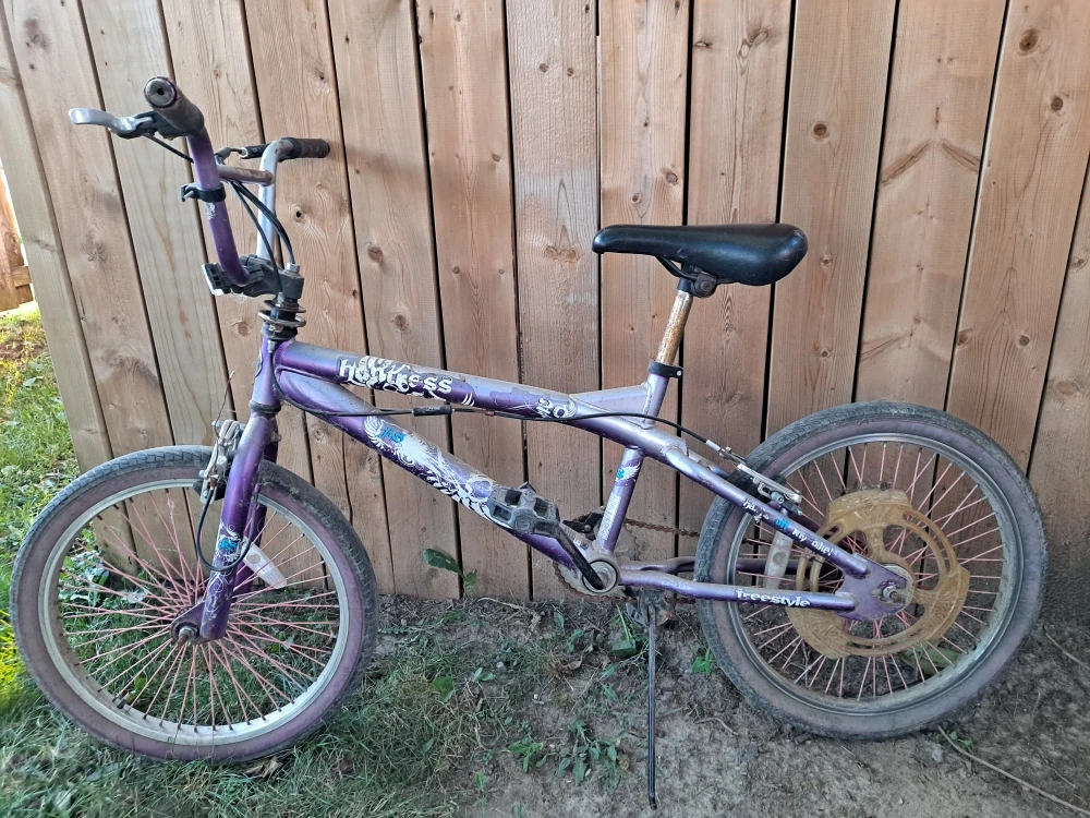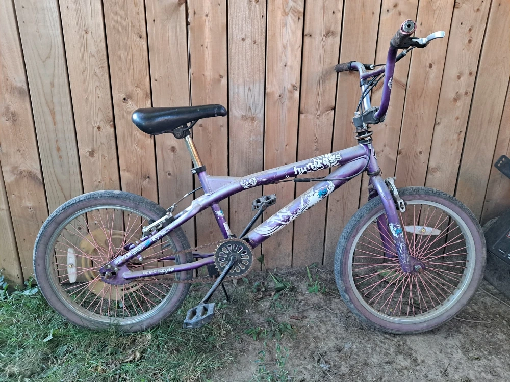 65Selling a HUNTRESS Freestyle BMX bike in purple. Has some signs of use.
