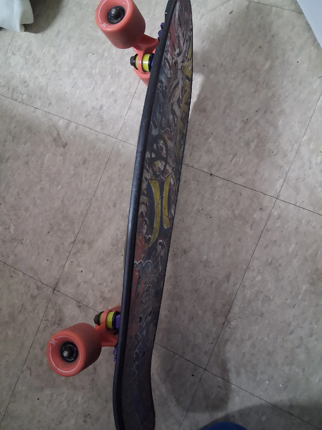 Selling a Hurley skateboard. It has orange Hurley wheels and a cool graphic design on the deck. Excellent condition like new used only a couple of times. 45$ OBO. Cash only. Pick up only.