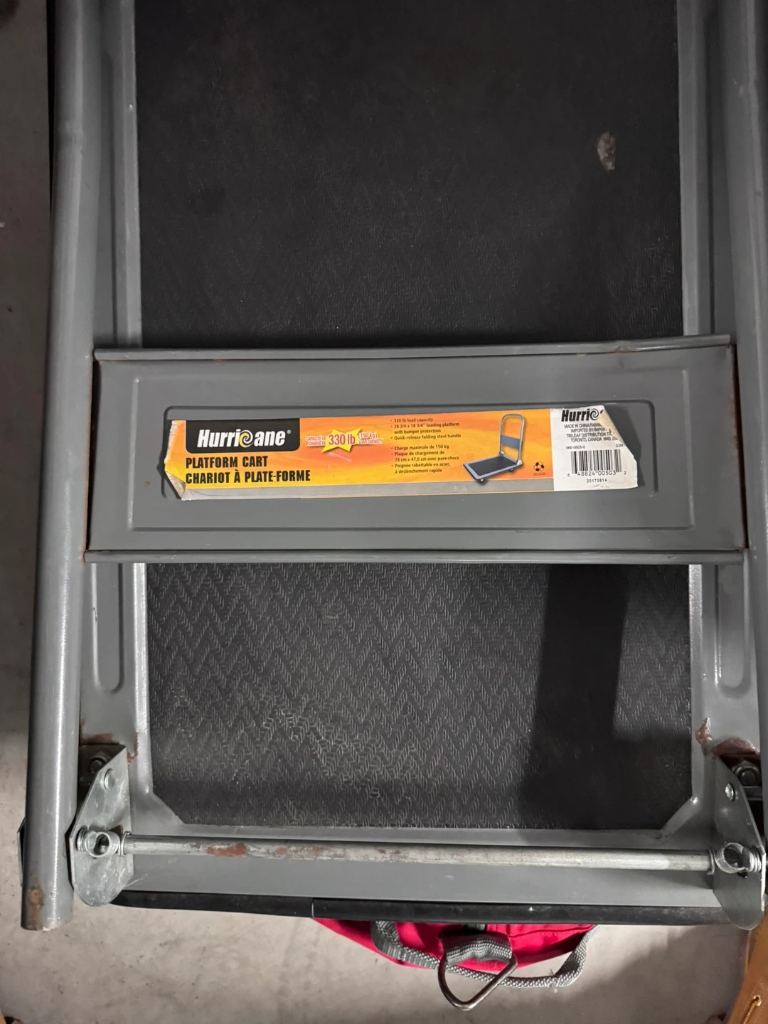 65Selling a Hurricane Platform Cart that can hold up to 330 lbs! It's a heavy-duty cart with swiveling casters and a folding steel handle. Perfect for moving heavy items around