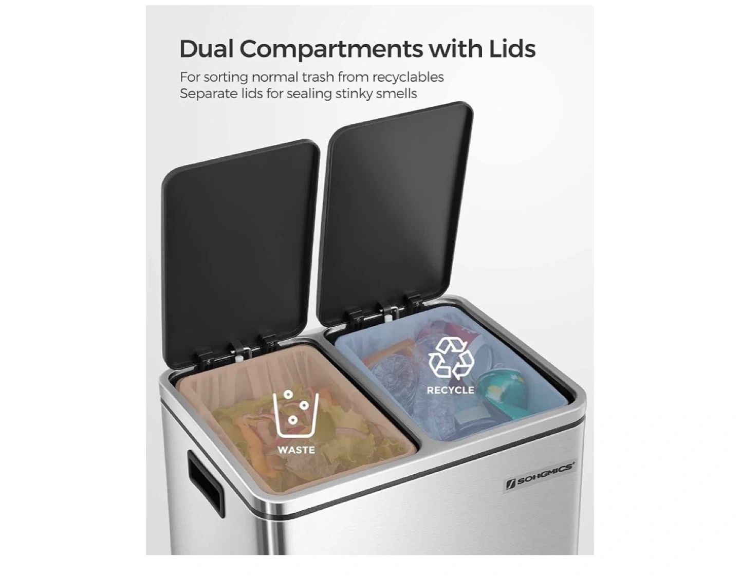 SONGMICS Dual Compartment Stainless Steel Trash Can