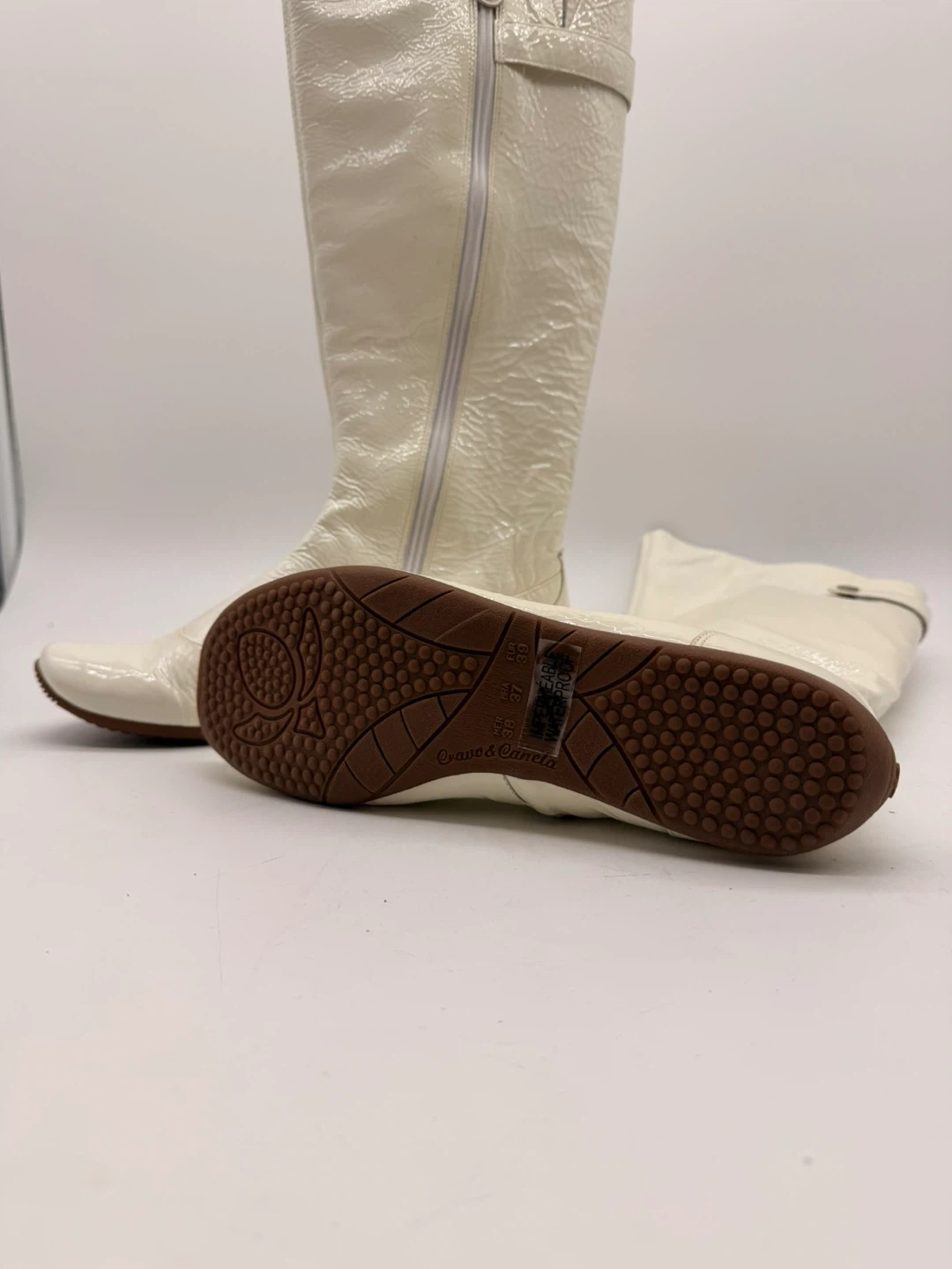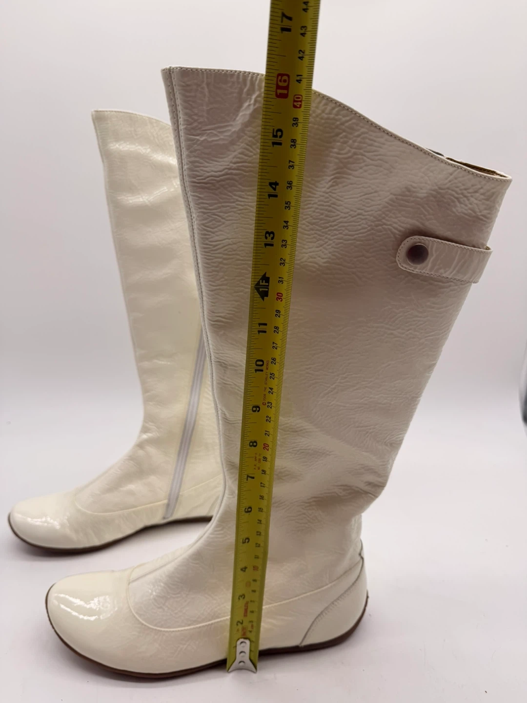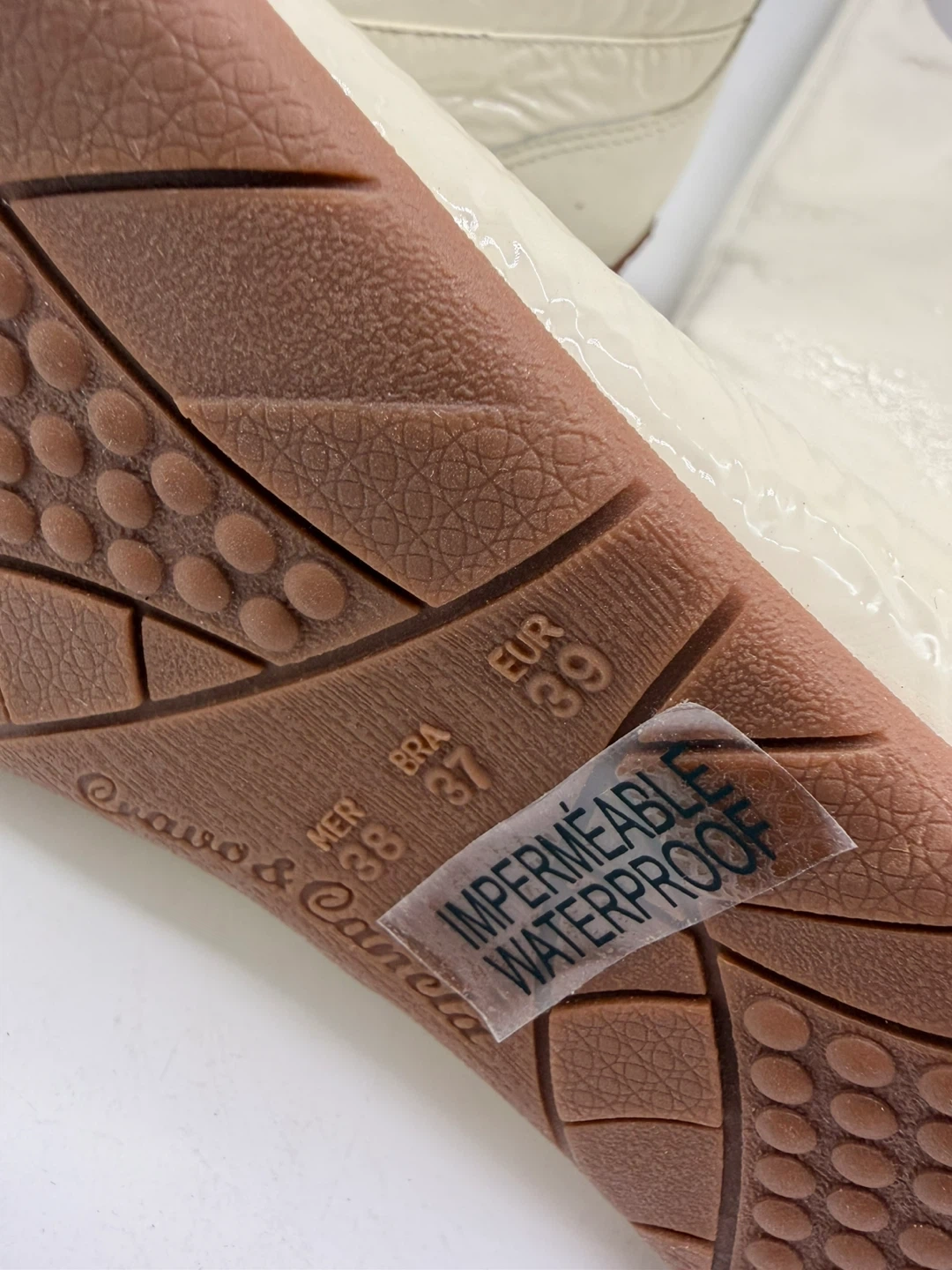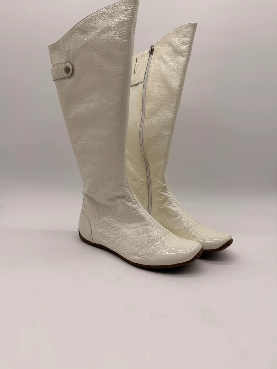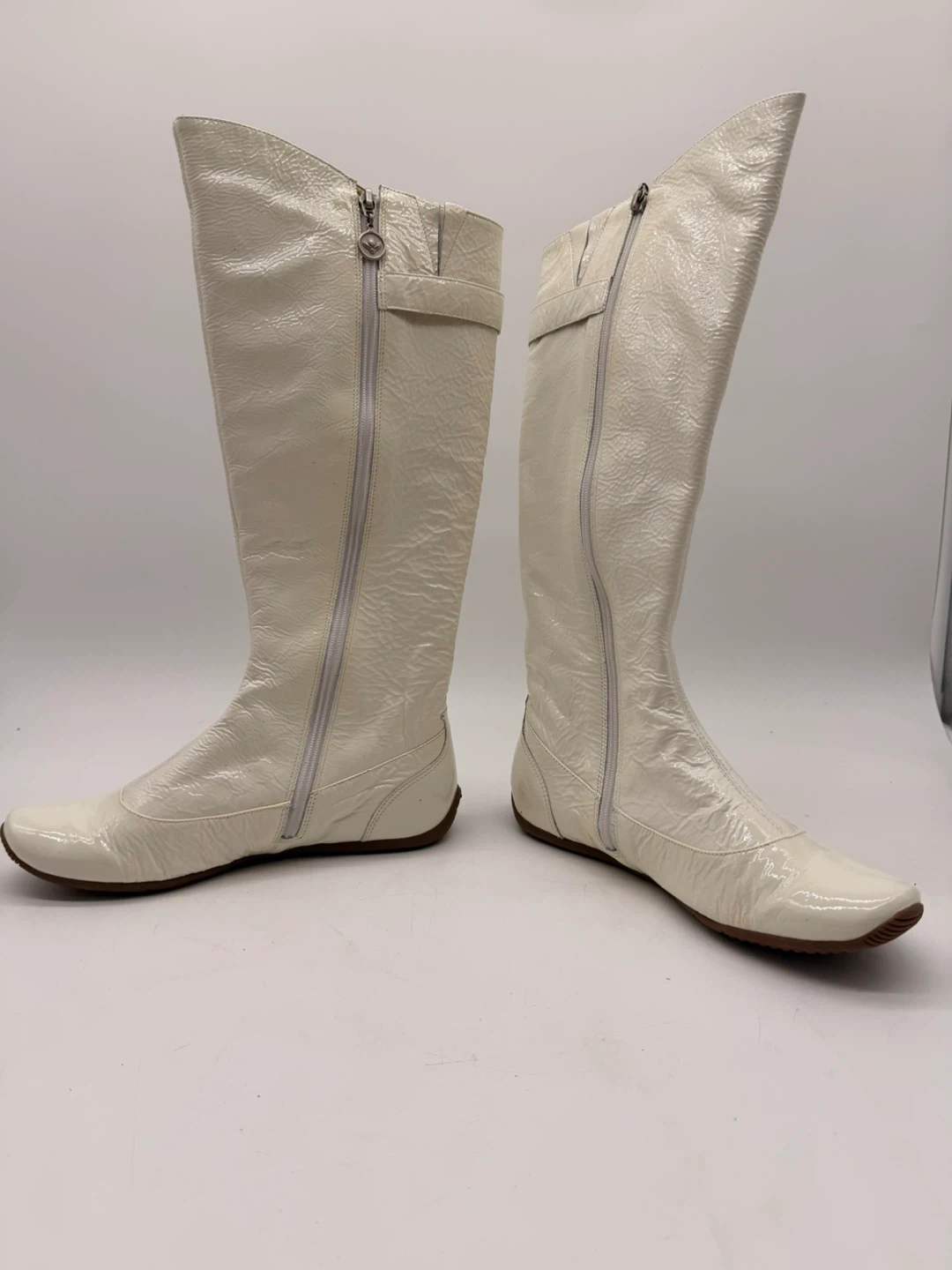 Brand new pair of Hush Puppies Aida women’s boots in glossy white patent finish. ✅ Waterproof design ✅ Knee-high height (~15”) ✅ Full side zipper ✅ Non-slip rubber sole ✅ Made for style + comfort Size: Women’s 8 (US) / 39 (EU) / 6 (UK) Condition: New in box Color: White patent Original Retail Price: ≈ $150 CAD Perfect for fall/winter, rain days, or chic retro looks. Pickup in North York / Shipping available. 22 up