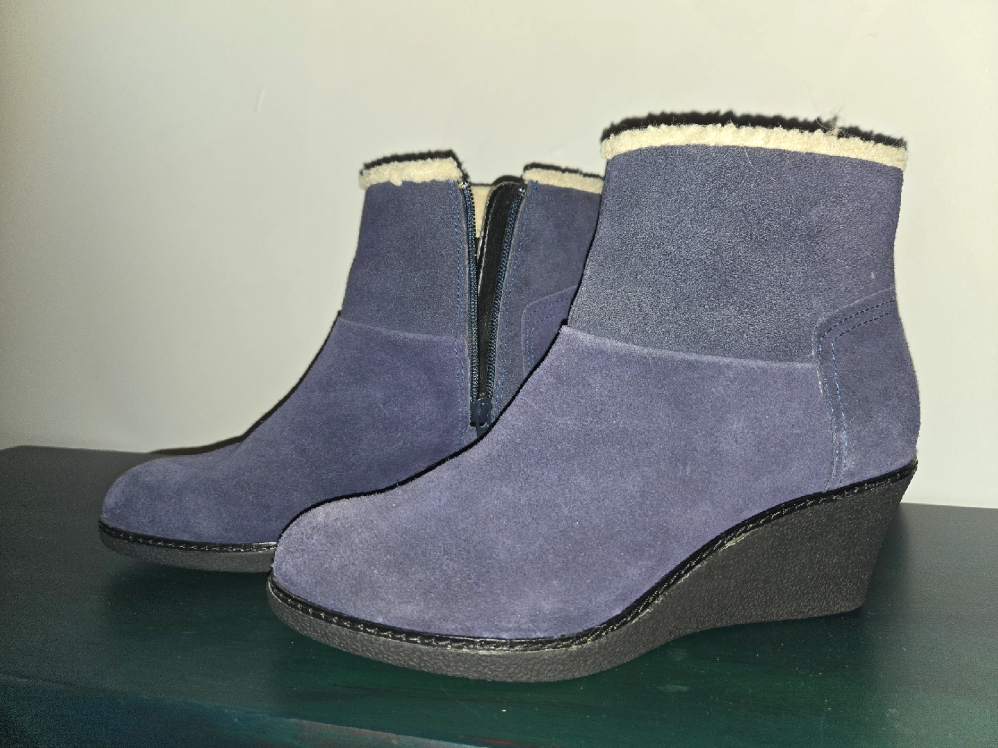 Hush Puppies Waterproof Blue Suede Wedge Ankle Boots - Size 8.5