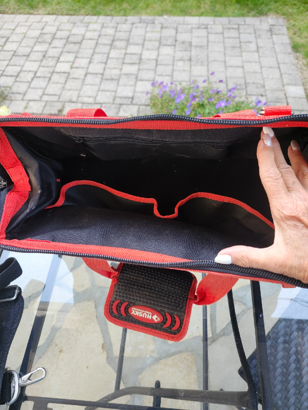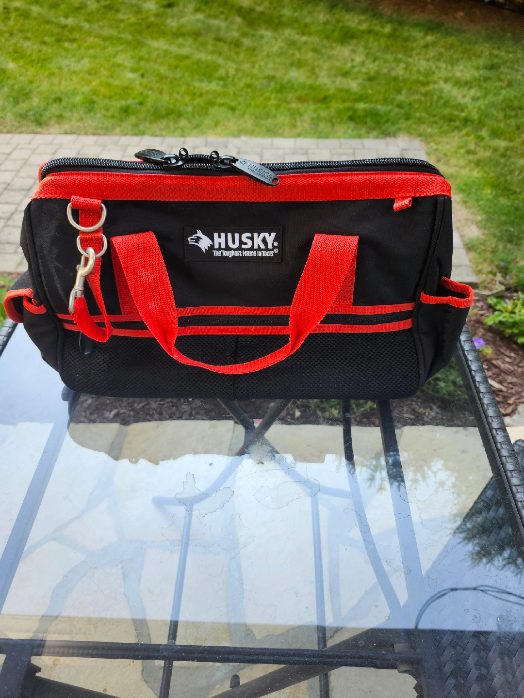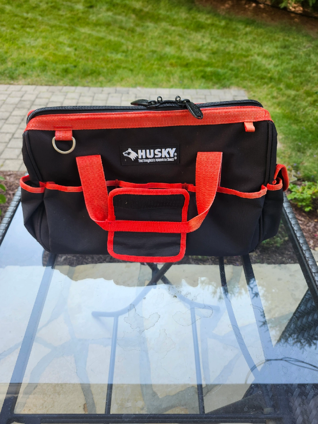Selling a Husky polyester tool bag in black and red. It's brand new and ready to hold all your tools! It has multiple pockets and compartments to keep everything organized. Water resistant with 2 handles and shoulder strap. 18" x 10" Asking $30