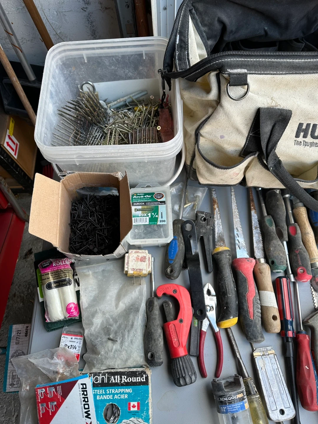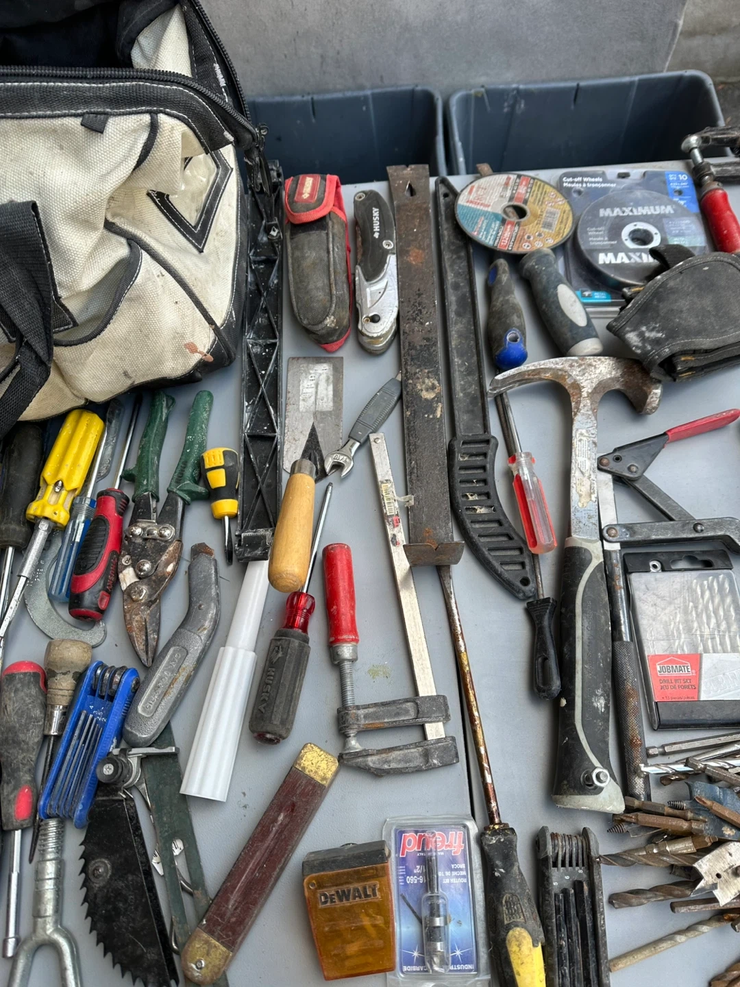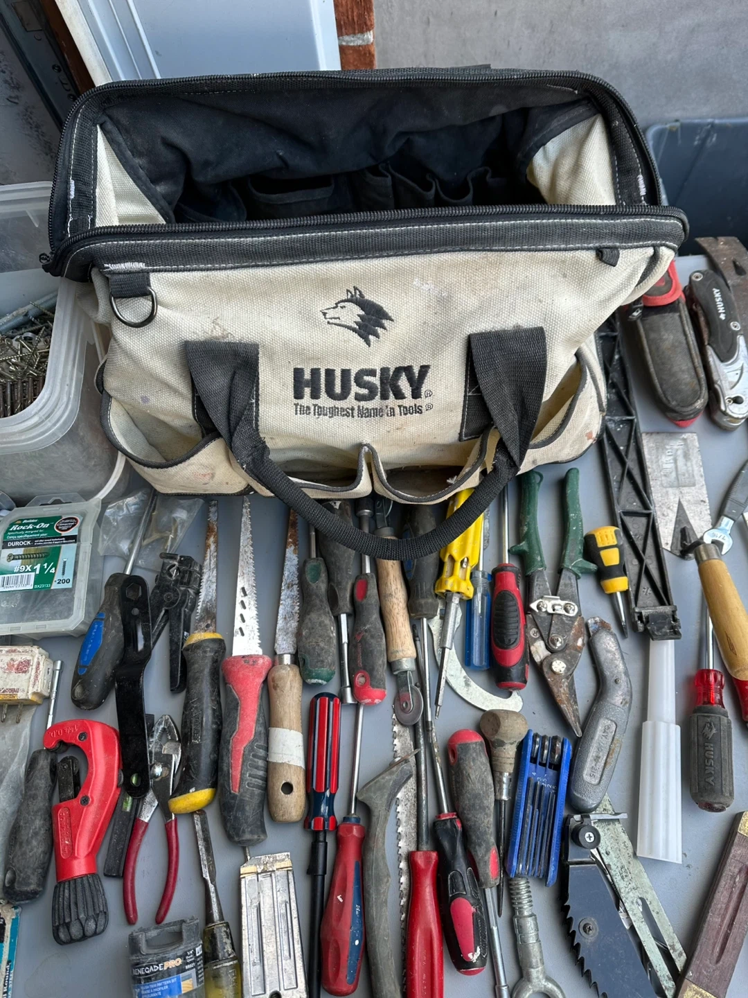 198Selling a Husky tool bag filled with various tools. There's a wide assortment of screwdrivers, pliers, saws, and more. Perfect for someone looking to start or expand their tool collection! Pick up only 65 Belgravia Ave. Cash only