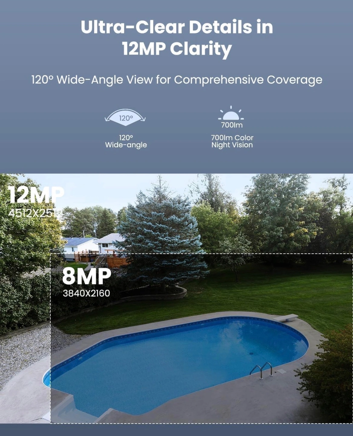 INCREDIBLE 12MP UHD IMAGE -- Mind-blowing 12MP PoE security camera system becomes affordable for your home and business security. Subtle details are recorded to ensure your peace of mind.