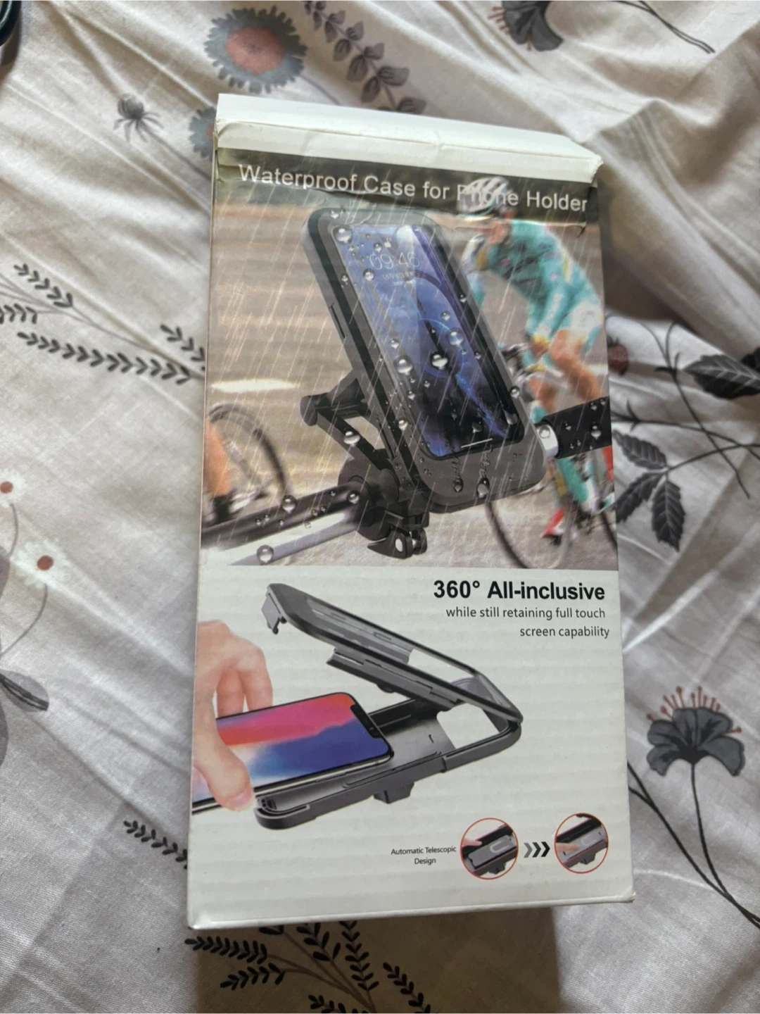 Waterproof case for phone holder, suitable for bicycle or motorcycle handlebars.