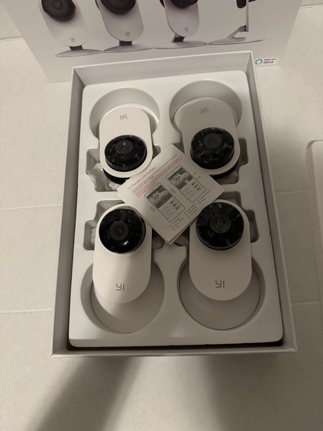 Selling a YI 1080p Home Camera Family Pack (4 cameras) for $60 CAD. These cameras are open box but in like-new, fully functional condition. Features include Full HD 1080p resolution, night vision, two-way audio, motion detection, and a wide-angle lens. Setup is easy via the YI Home App (iOS & Android). Optional cloud storage is available through YI Cloud subscription. These cameras work with Alexa & Google Assistant. You can use MicroSD cards (not included, Class 10, FAT32, 8GB–64GB recommended) for local recording. Without an SD card, cameras still offer live monitoring and motion alerts. The package includes 4 YI 1080p Home Cameras, power adapters, and USB cables. Payment is cash only. Pickup is near Rossland & Brock Rd, Ajax.