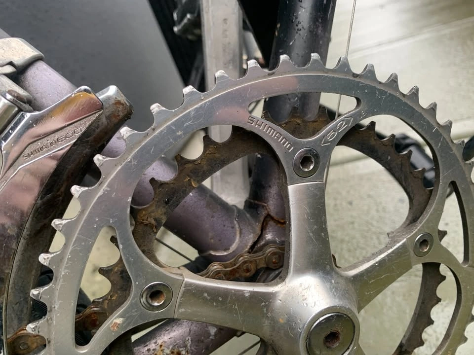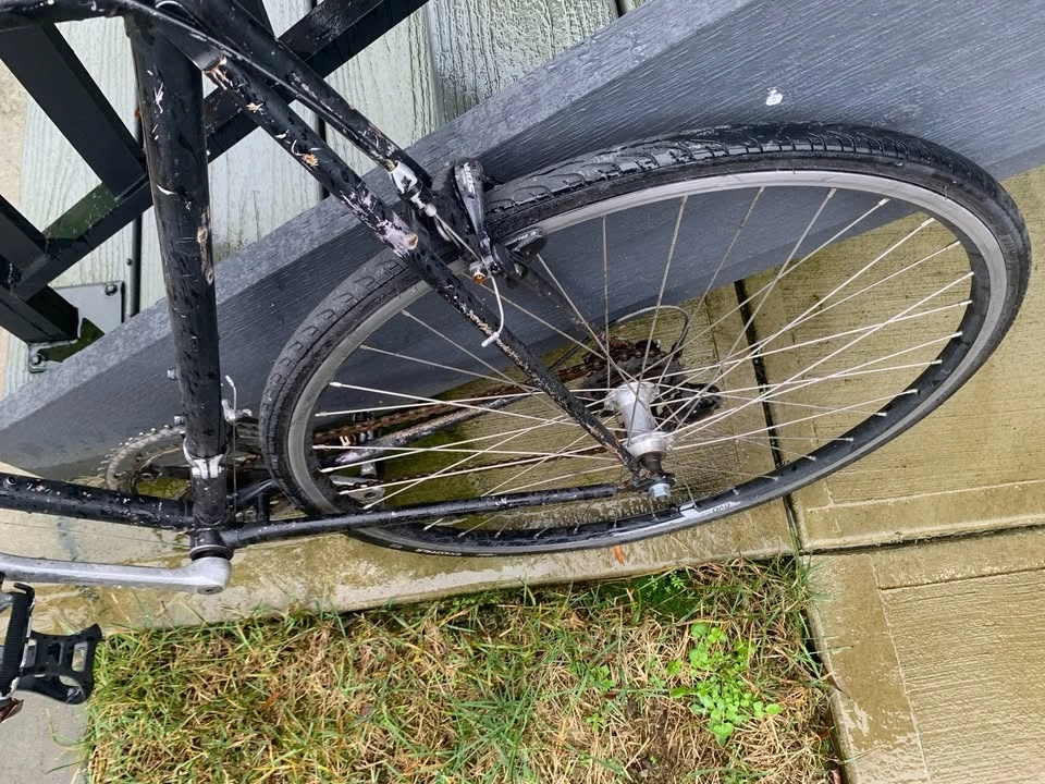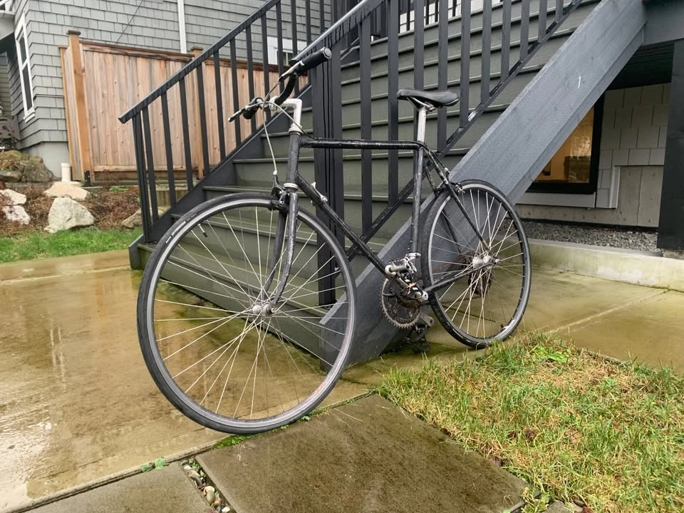 I bought this vintage road bike approximately 10 years ago and paid $600 or $700, at Mac Talla cycles. It was originally purple with drop handlebars, but I spray painted it black and added new handlebars. It is in rough condition right now. The crank needs to be replaced, it needs a new seat and rear tire tube, rust, plus some other attention needed. It's been exposed to the elements and needs some rust-proofing spray paint at the very least. Frame size: 22.5" (57cm). Wheel size: 28-inch (700c).