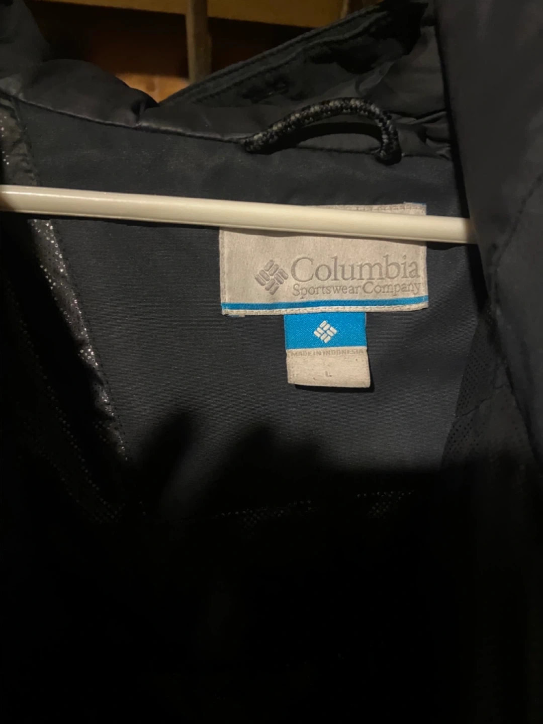 This Columbia winter jacket is dark blue and a size large. It's made for cold weather. It's perfect for staying warm during the winter months!