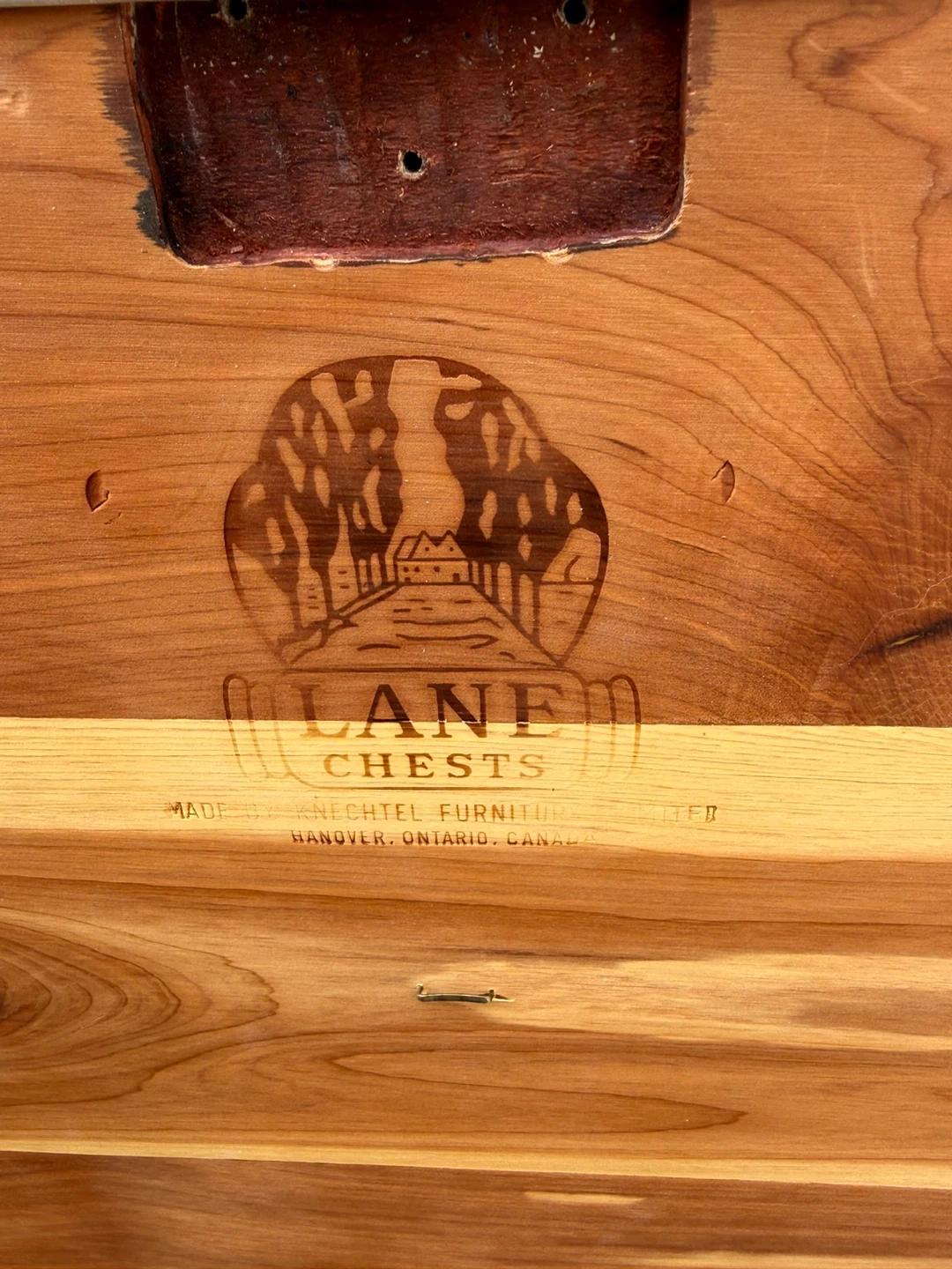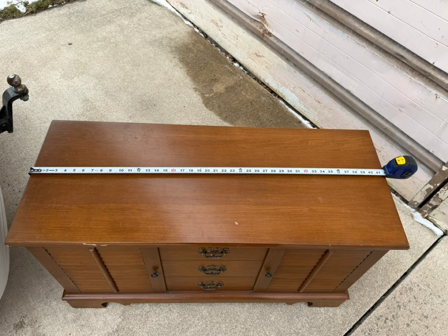 Vintage cedar lined blanket chest with three drawers. Interior lined with aromatic cedar. Measures approximately 41 inches wide and 19 inches high. Perfect for storing blankets or linens!