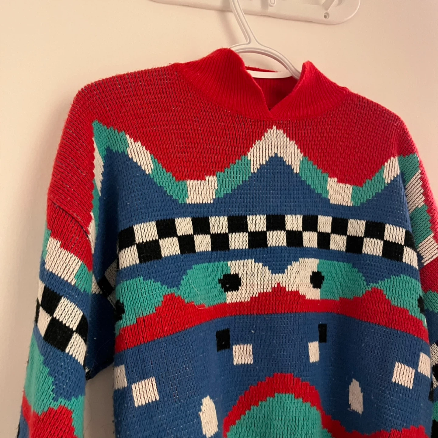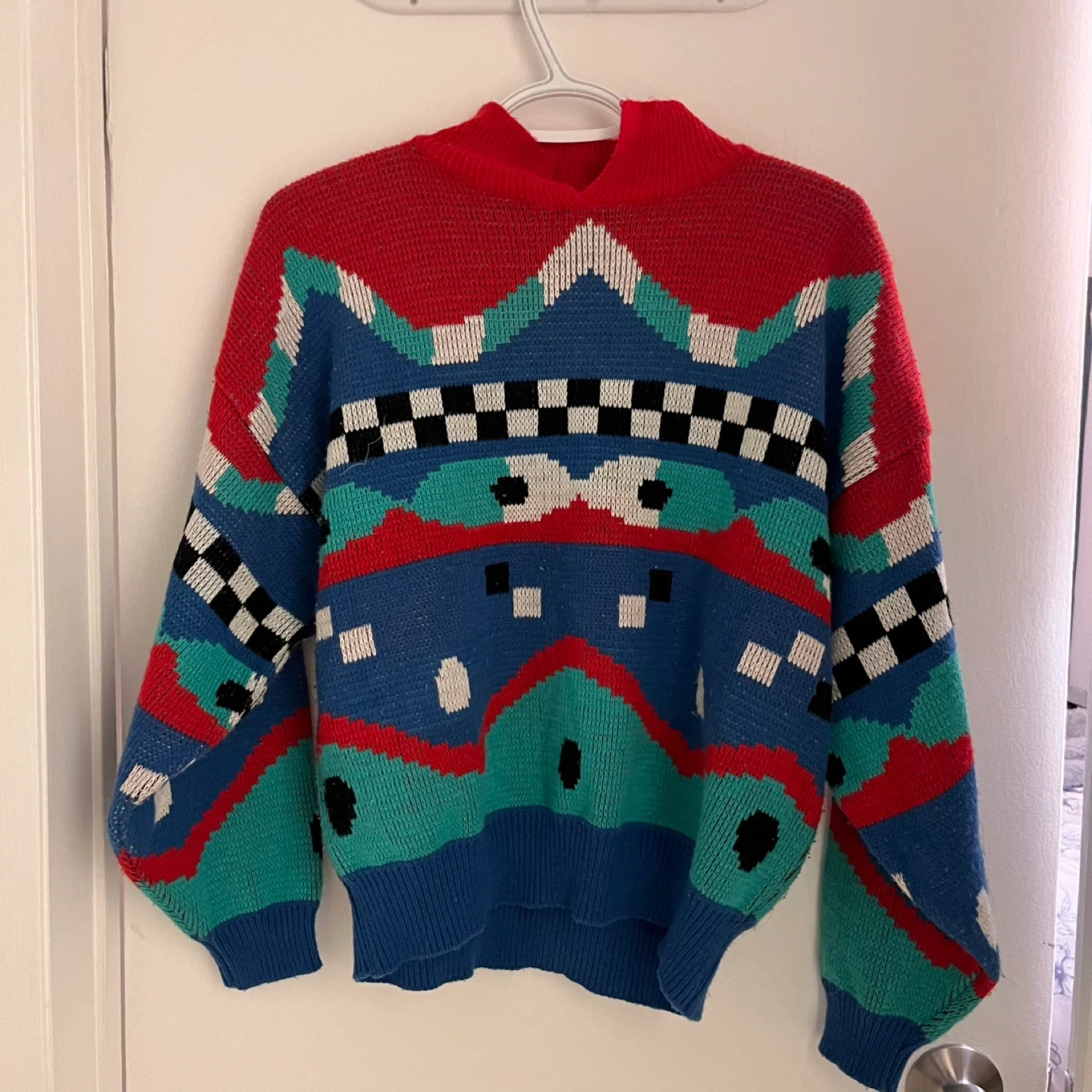 Super funky, great condition and very warm. It has a slight lantern sleeve and some very mild pilling. Perfectly fine to wash but lay flat to dry.