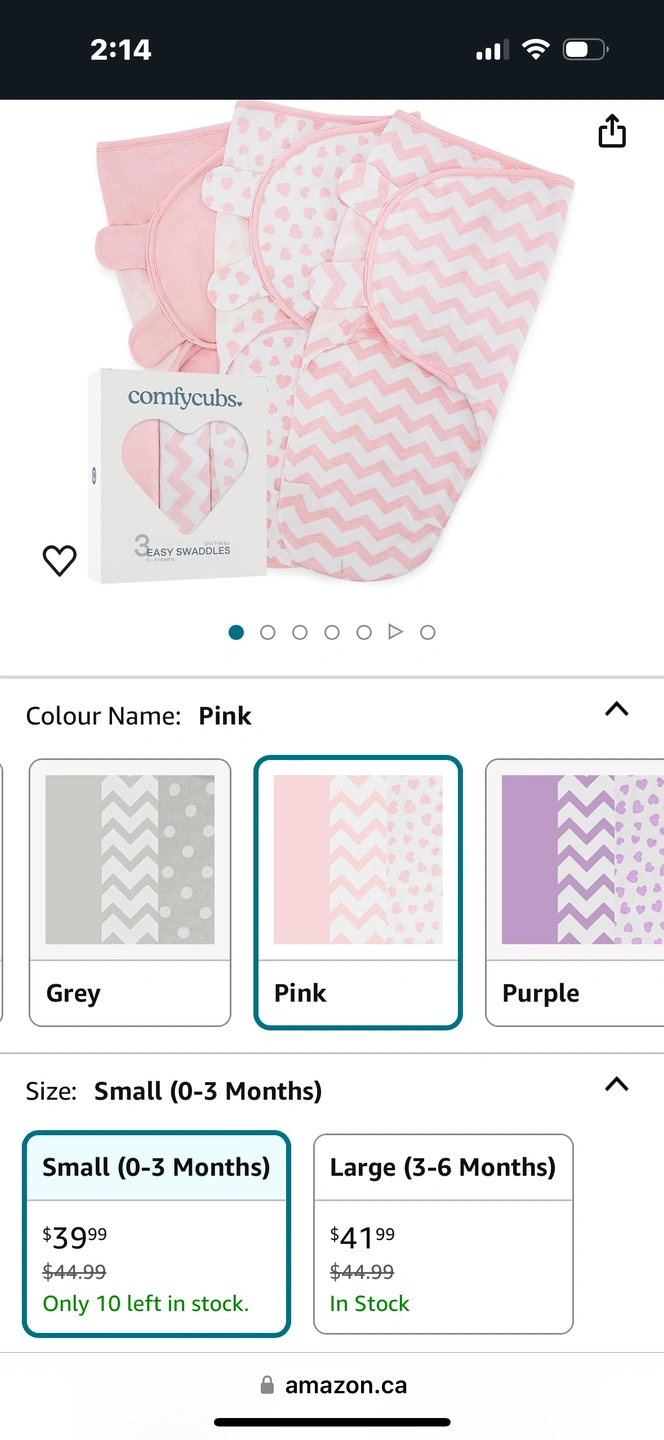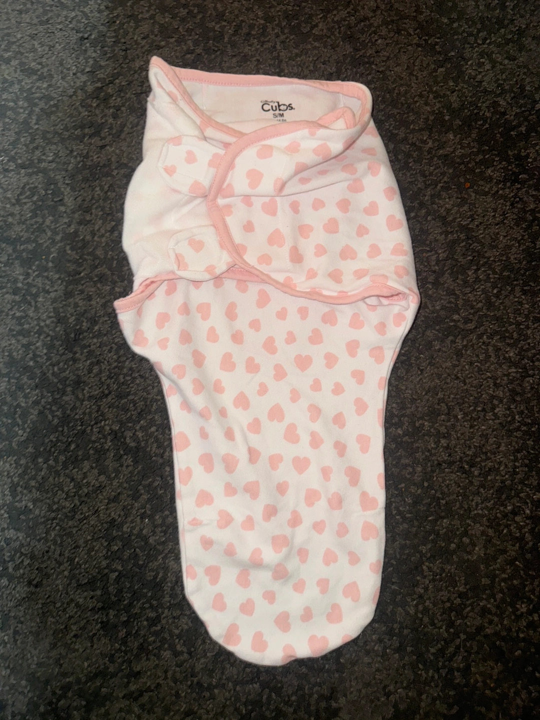Only one available Baby swaddle with pink heart pattern. Size small (0-3 months).