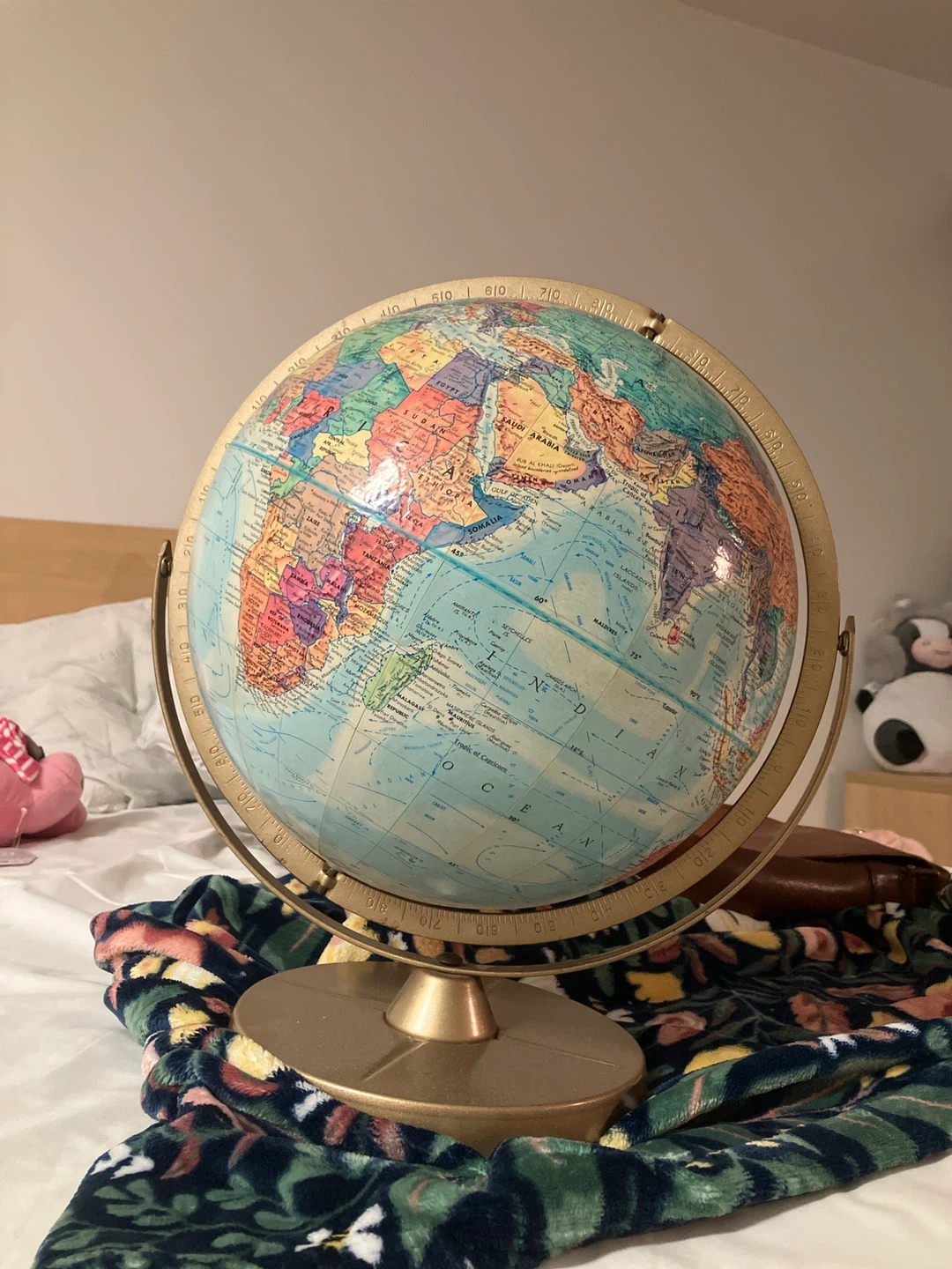 Here's a globe that could be a great addition to your home or office! It features detailed geographical information and could be both educational and decorative