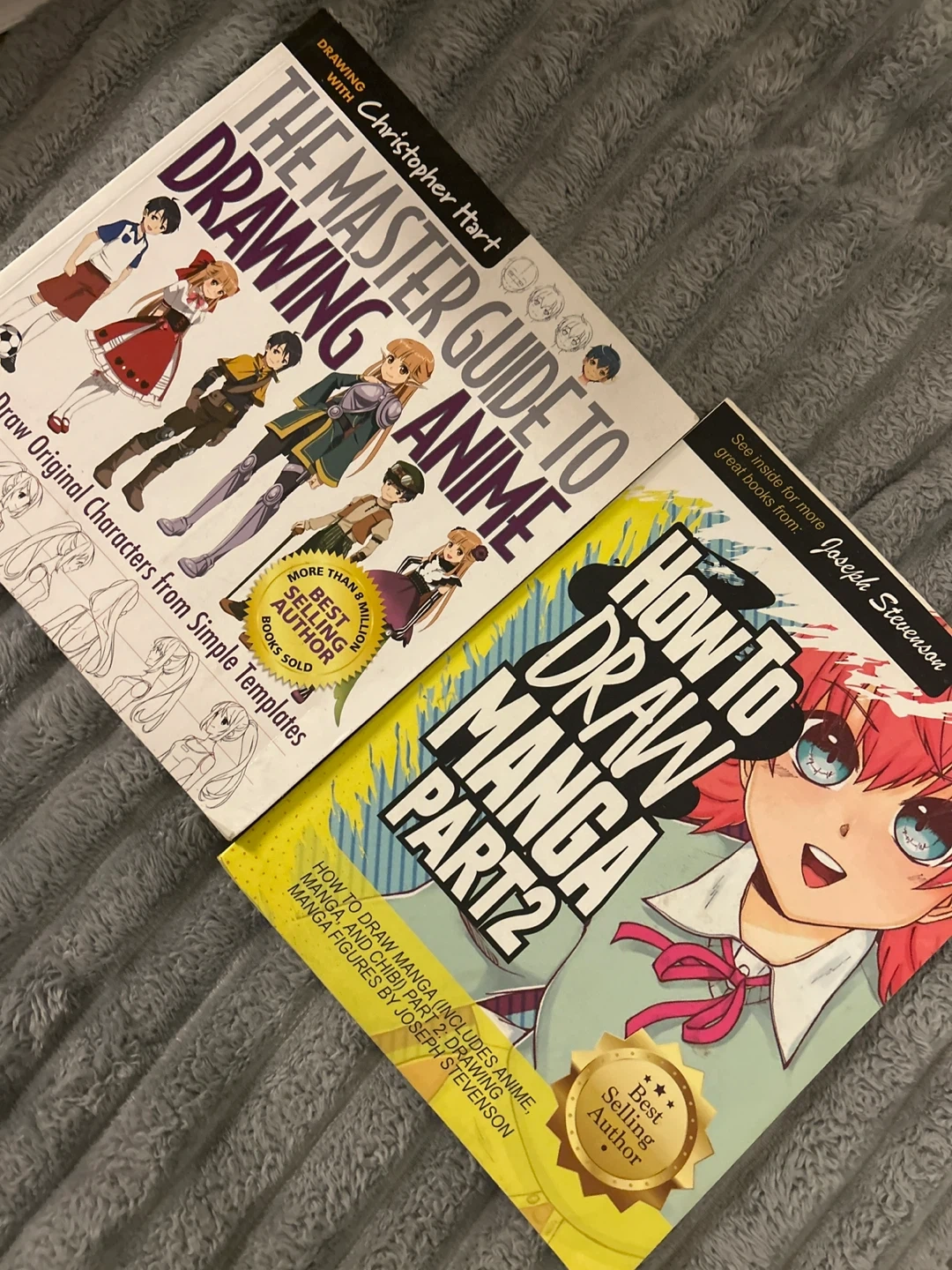 This set includes 'The Master Guide to Drawing Anime' by Christopher Hart and 'How to Draw Manga Part 2' by Joseph Stevenson. They focus on drawing original characters and manga figures. Perfect for aspiring artists looking to learn anime and manga styles!