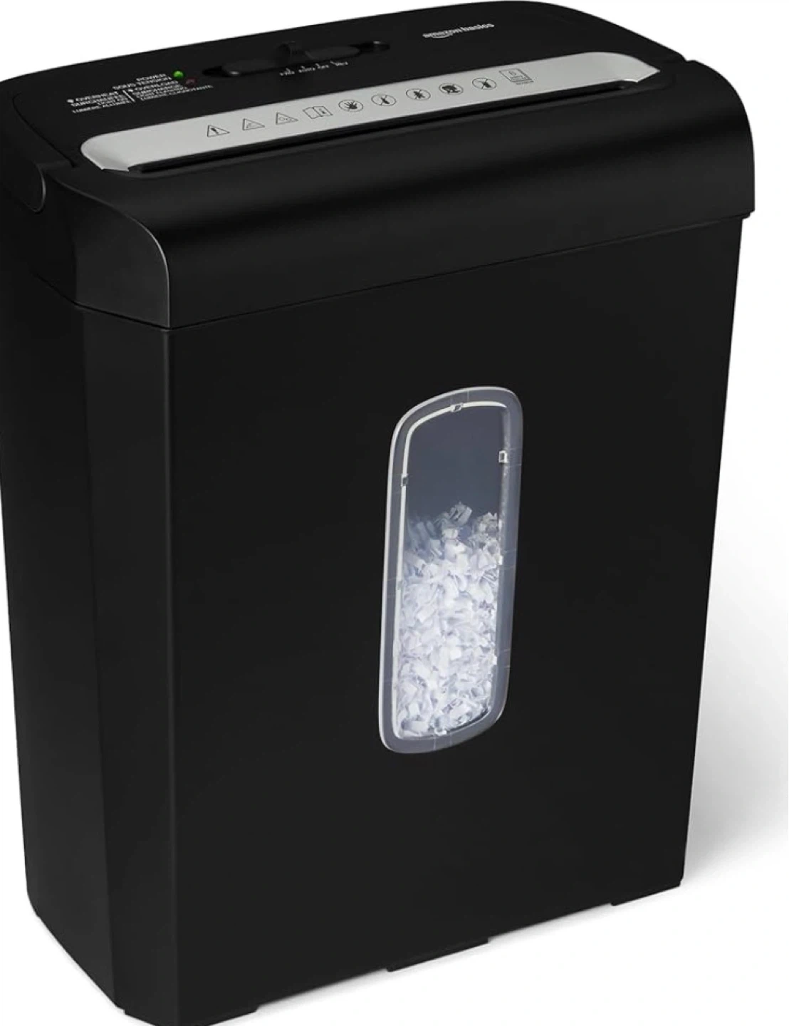 Déchiqueteuse de documents AmazonBasics. Coupe jusqu'à 6 feuilles à la fois. Peut aussi déchiqueter des cartes de crédit. Idéale pour la maison ou le bureau.