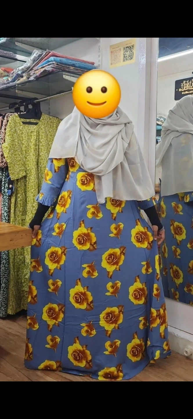A beautiful maxi dress with a lovely floral pattern! The dress features a blue background adorned with vibrant yellow roses. Perfect for a special occasion or just adding a touch of elegance to your everyday wear
