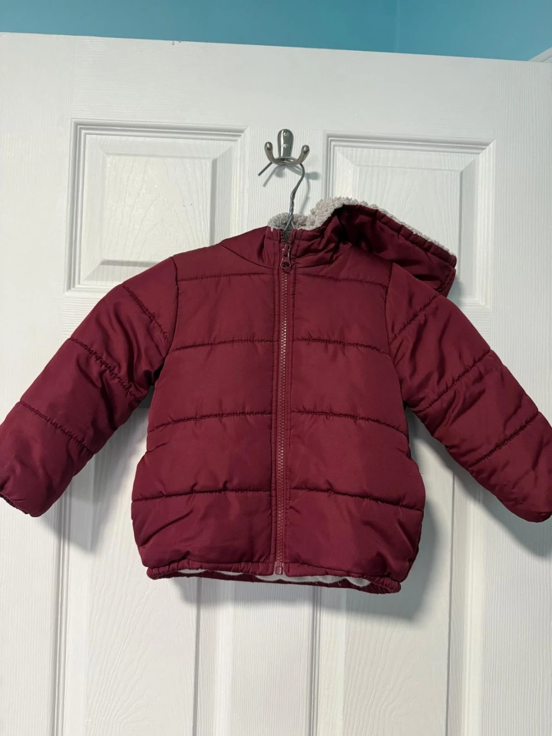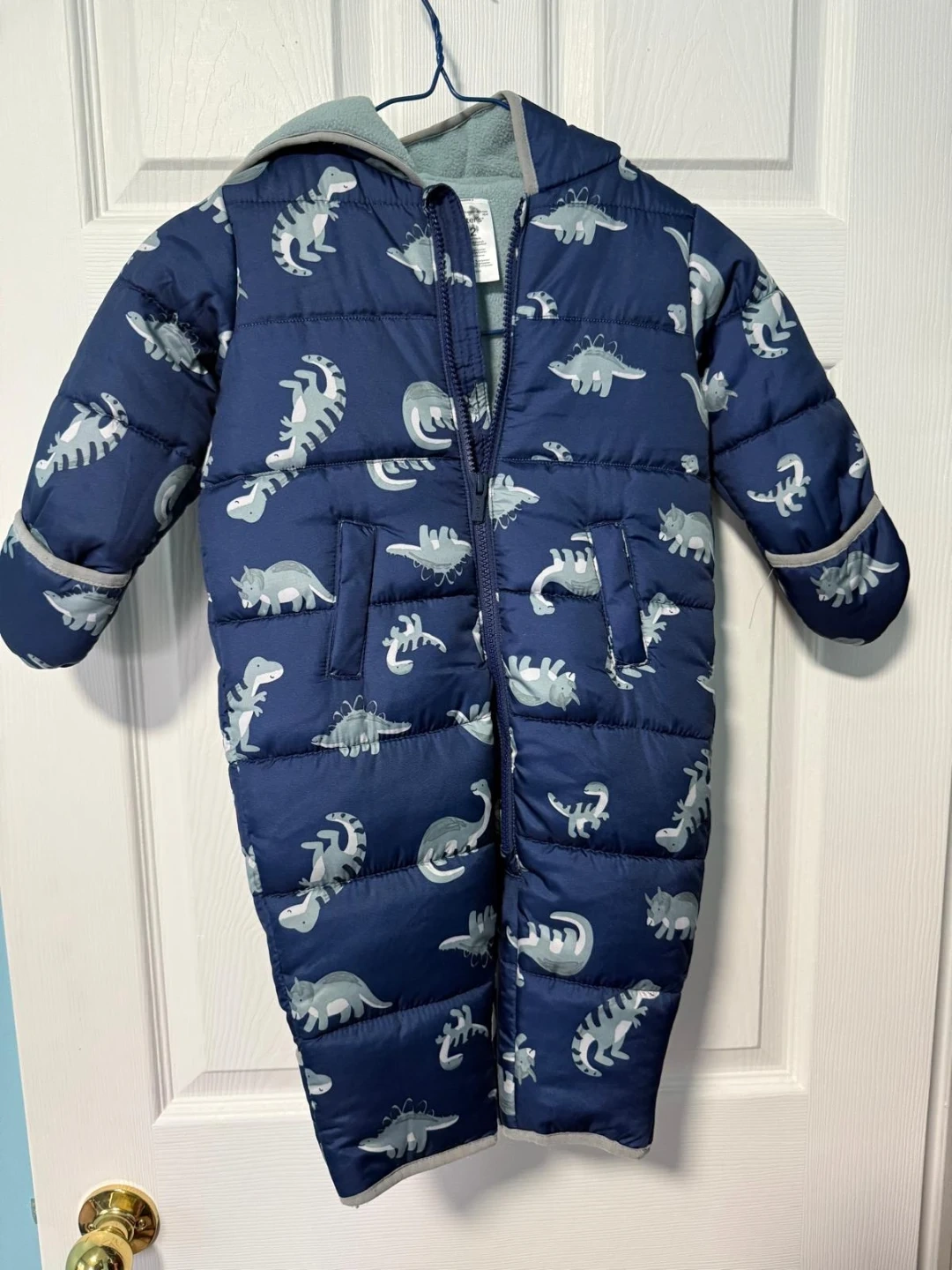Selling a bundle of kids winter outerwear! Includes a maroon puffer jacket, a blue dinosaur snowsuit, and a pink floral snowsuit set. All in great condition and ready for winter adventures
