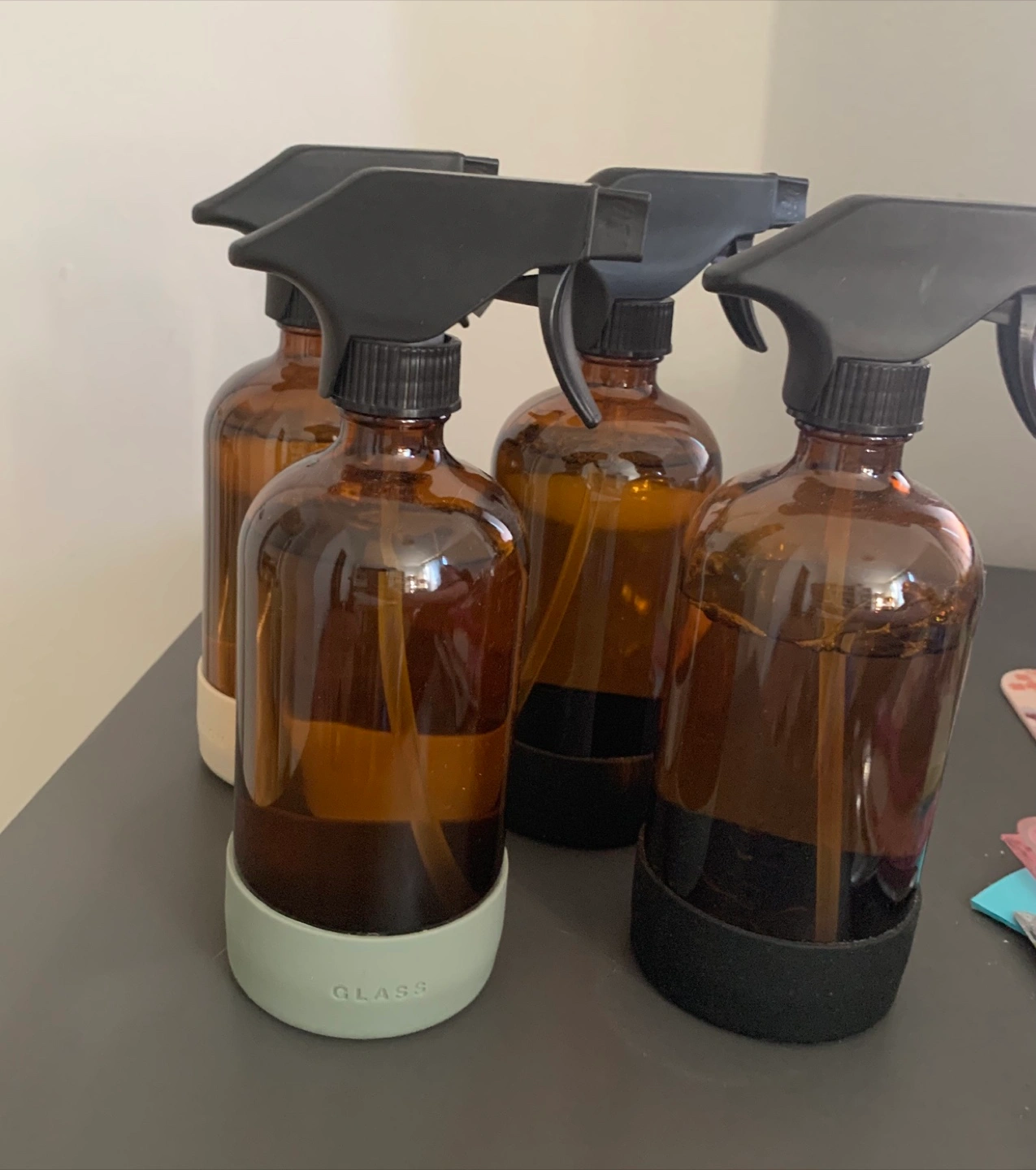 -Lot of 4 Saje cleaning products: -glass and mirror: Grapefruit and Palmarosa -bathroom cleaning kit: Tea Tree and Lemon -multi surface cleaning: Eucalyptus and Black Spruce -multi surface cleaning: Lemon and Grapefruit -all are almost 100% full -the bottles are glass bottles -I’m moving and just getting rid of things