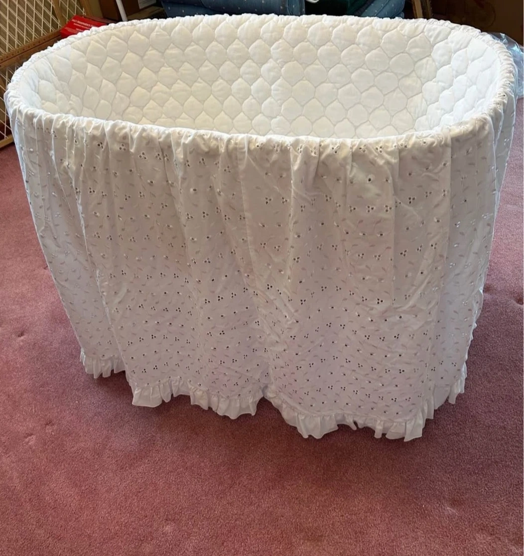 REDUCED Baby Bassinet with White Eyelet Skirt Cover