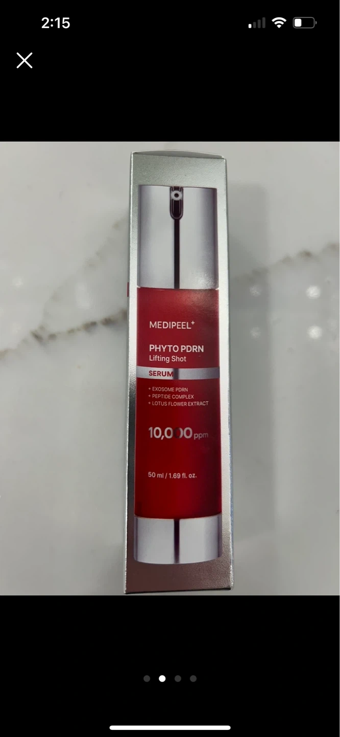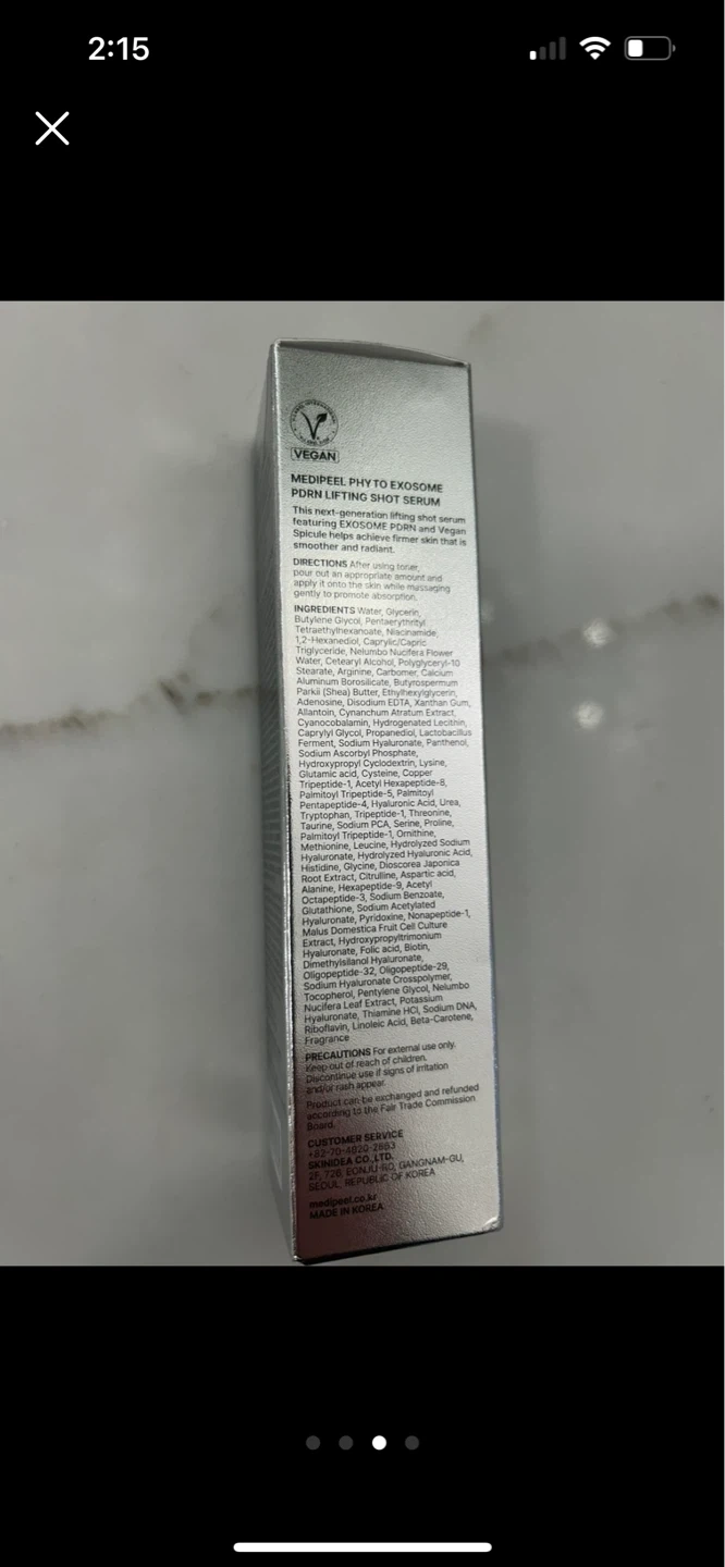 This is the MEDI PEEL Phyto PDRN Lifting Shot Serum. It's 50ml or 1.69 fl. oz. This vegan serum contains Exosome PDRN, Peptide Complex, and Lotus Flower Extract.