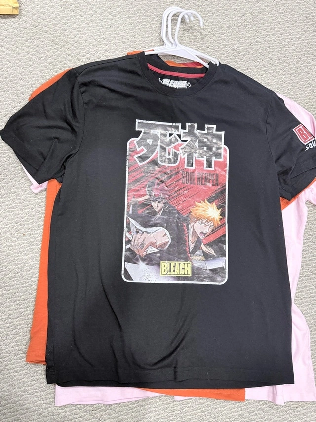 Get ready to power up your wardrobe with these anime t-shirts! This set includes several shirts with some popular anime characters. These shirts are in used condition, please see images for details. It's still available if the ad is up! No need to ask, just let me know when you want to pick it up! Cash accepted.