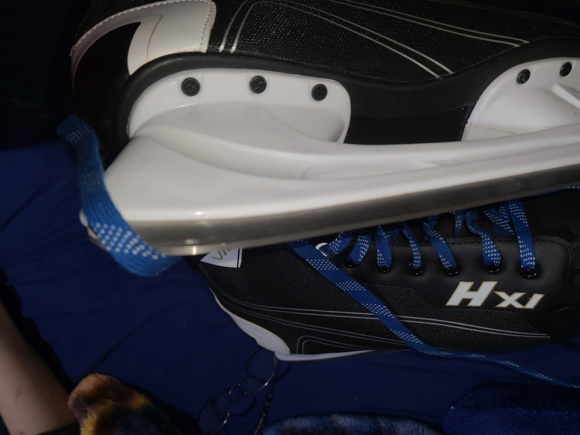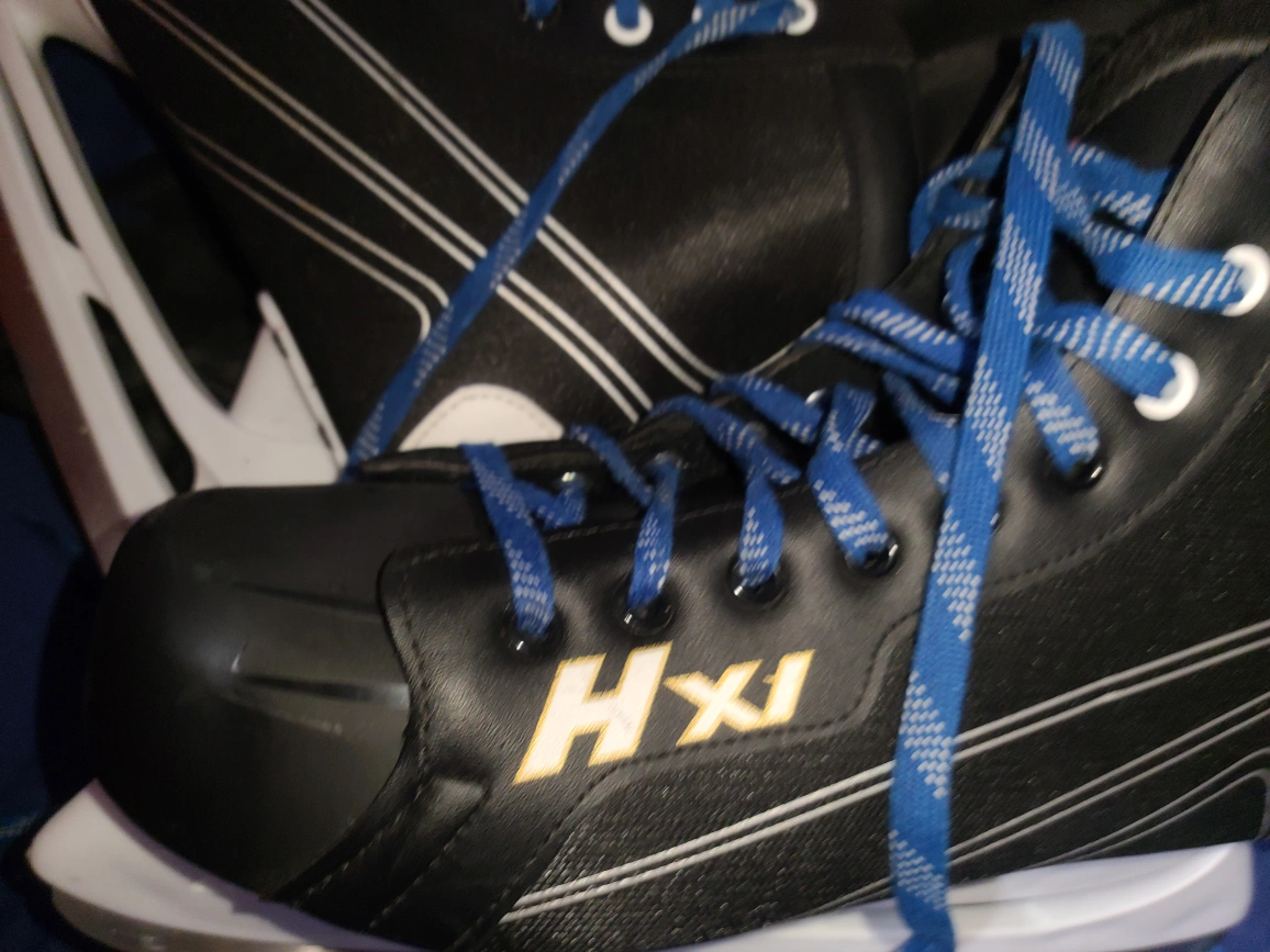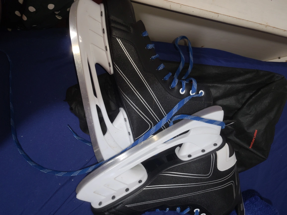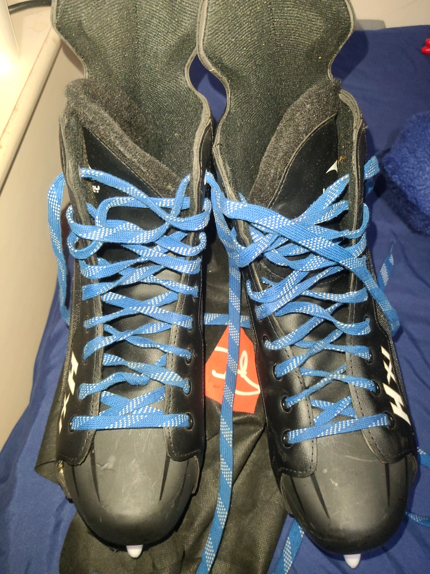 10Pair of black ice skates with blue laces Good condition.size men' 12