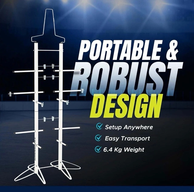 Portable & Sturdy Design - Despite its steel stand construction, the drying rack weighs only 6.4 kg, making it easy to transport and set up anywhere, ensuring your hockey gear stays in top condition.