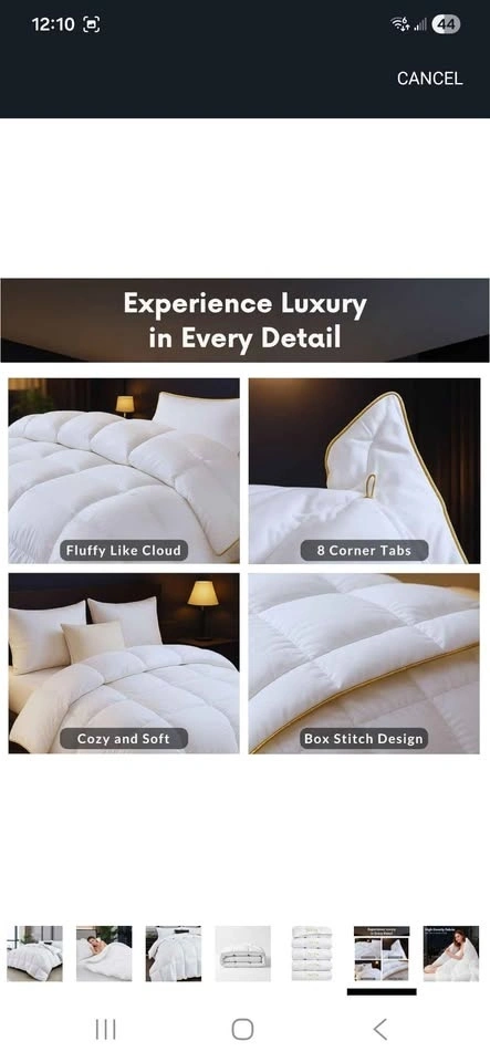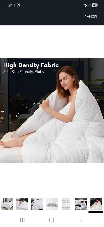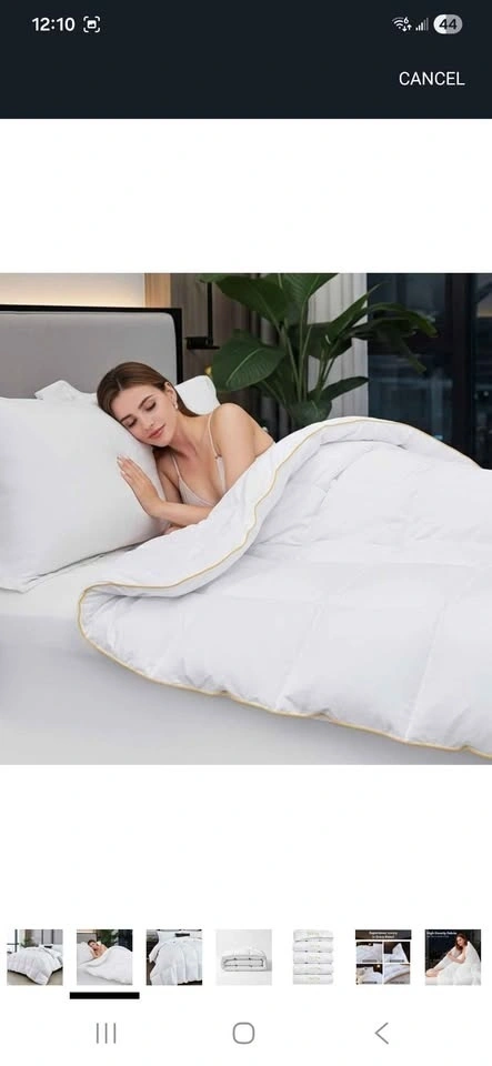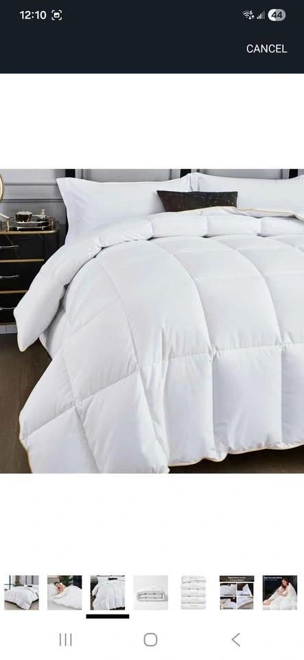 Brand new luxury goose feathers down quilted duvet. Skin-friendly 100% down-proof fabric cover. Anti-allergy hotel quality warm quilt, suitable for all seasons and machine washable. Size: 106 x 90 inch (Super-King). From a pet-free and smoke-free home.