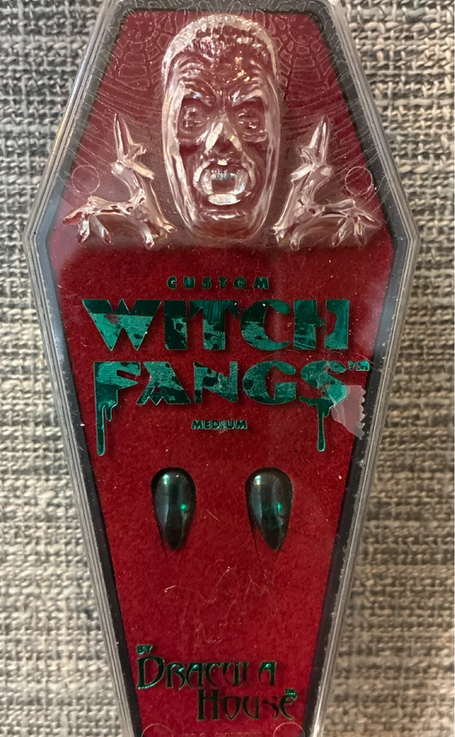 Custom Witch Fangs from Dracula House. These are size medium. Made from thermoplastic material.