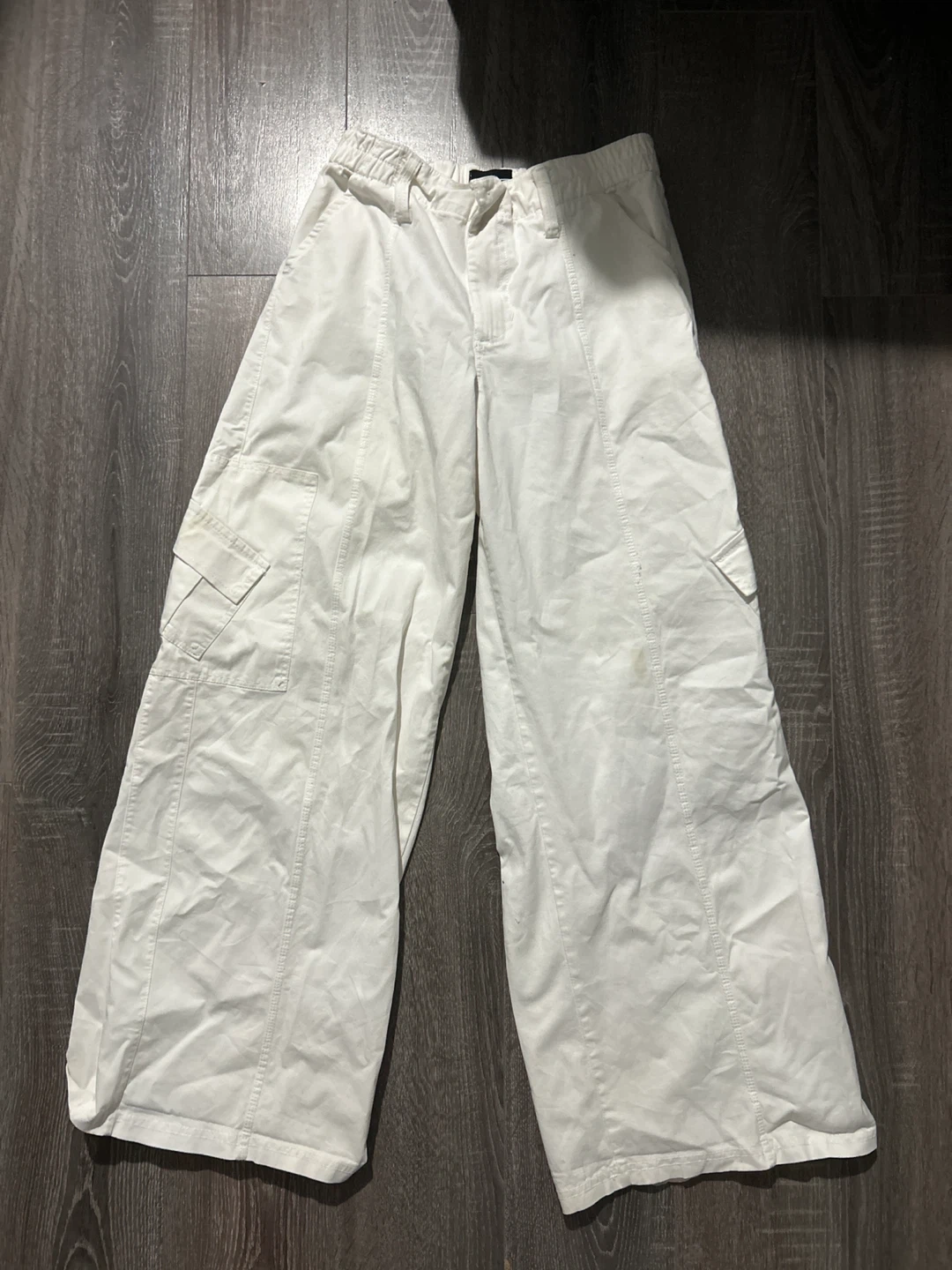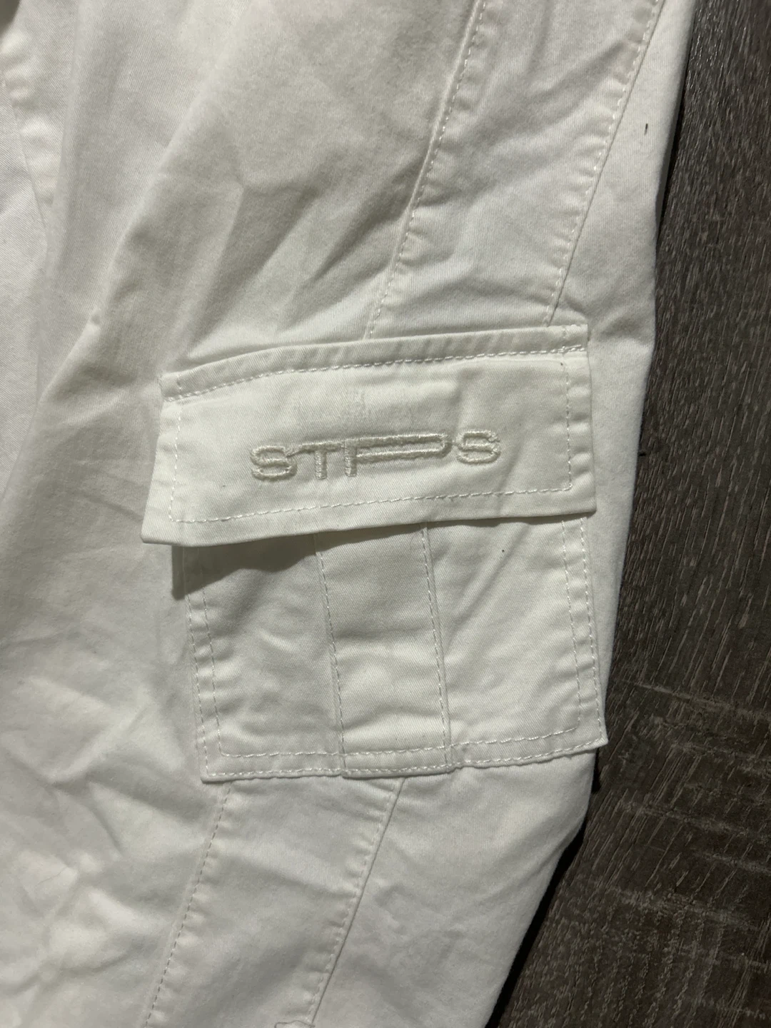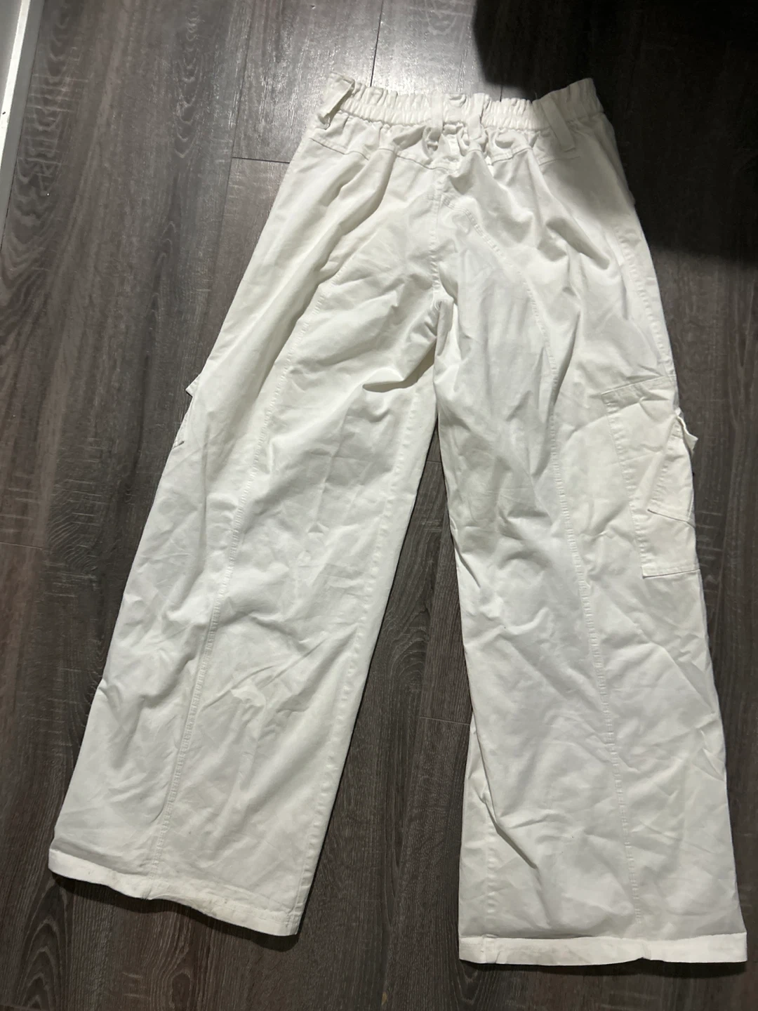 Selling a pair of white cargo pants from stps They're in great condition and feature a comfortable fit with a drawstring waist. Perfect for a casual, stylish look! baggy fit