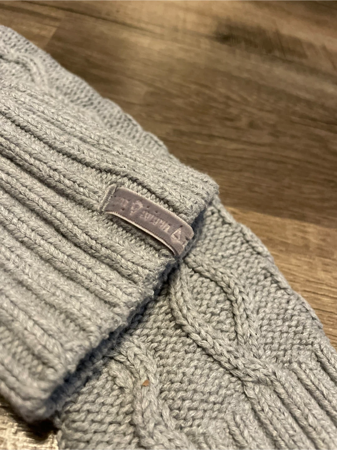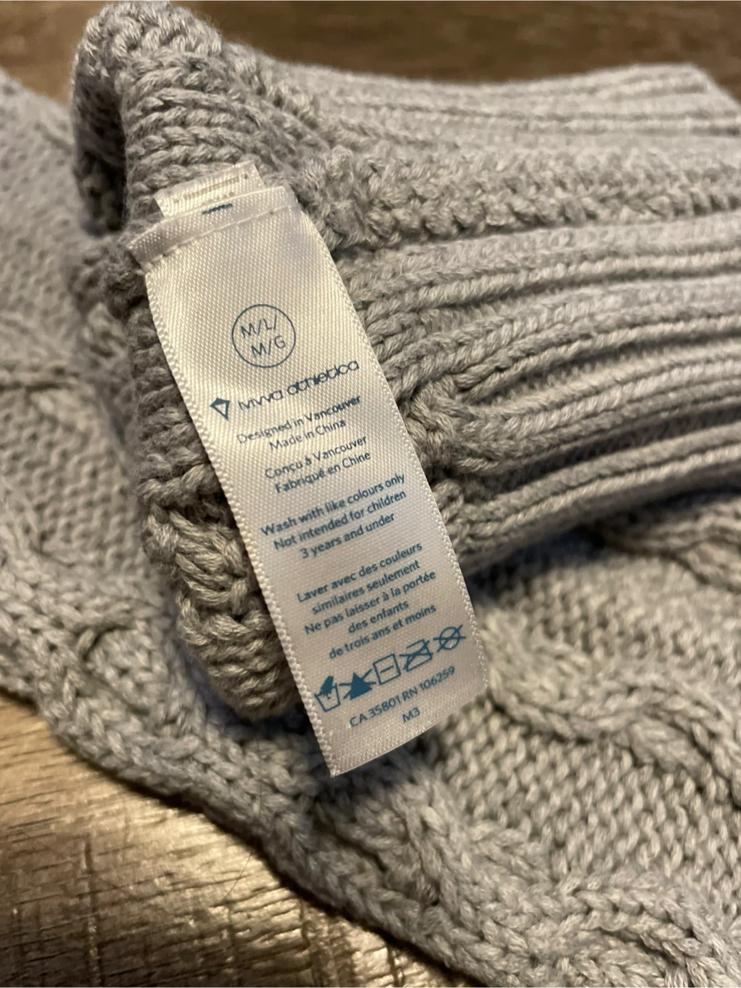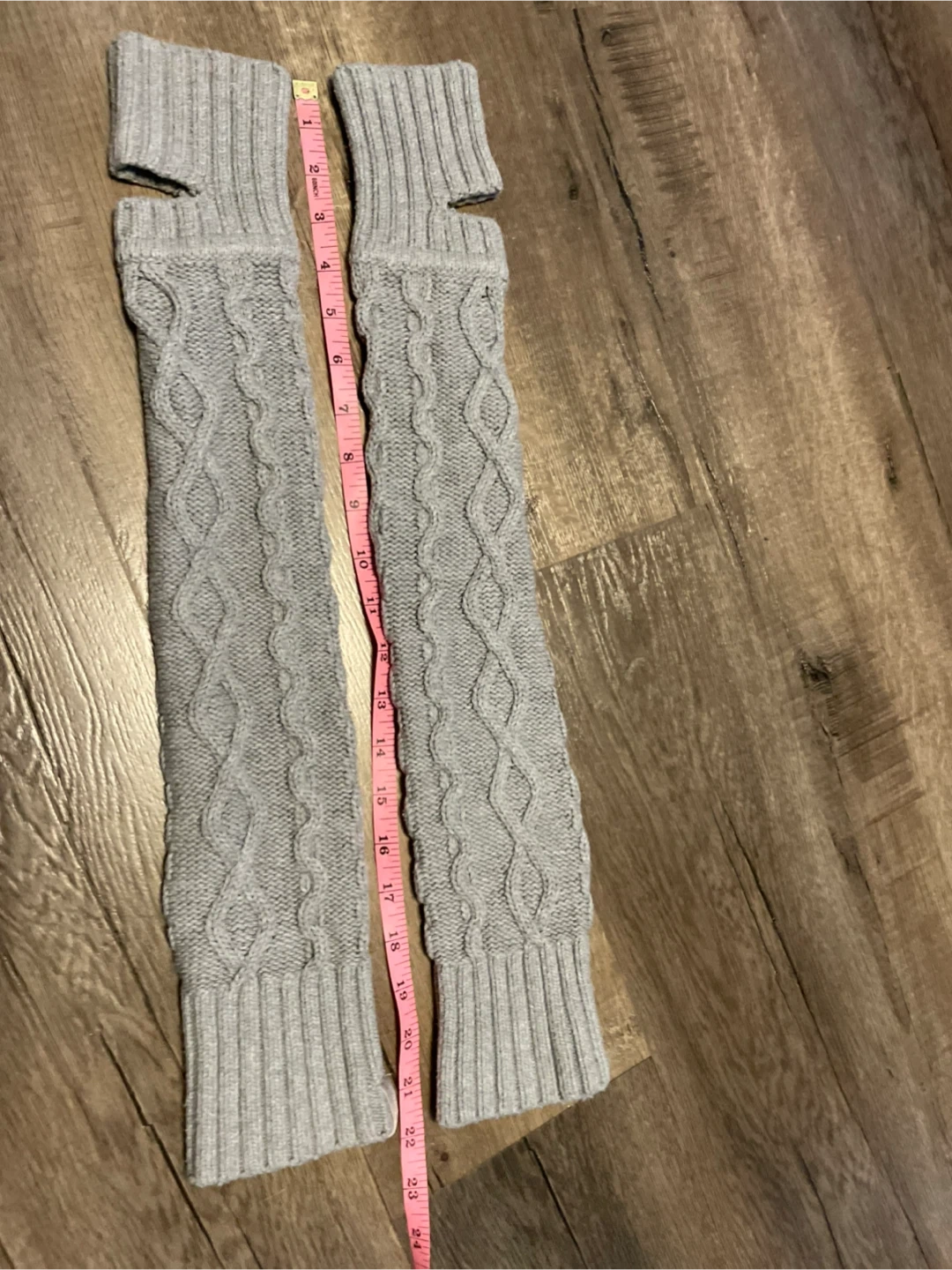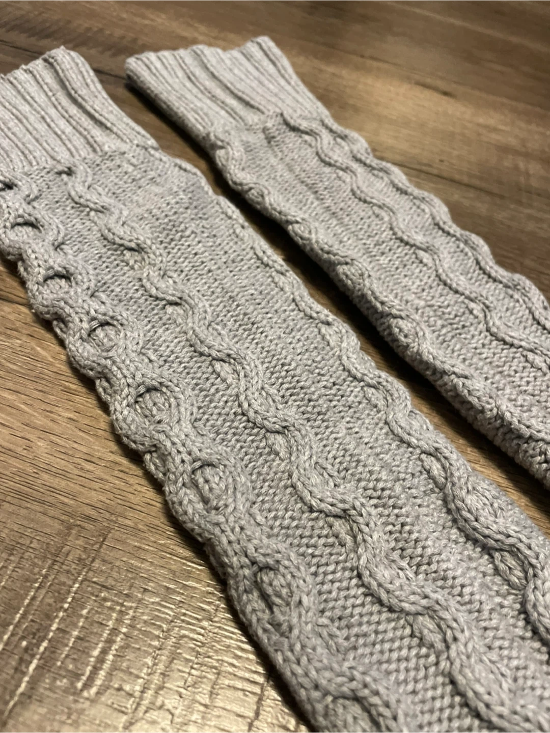 Ivivva leg warmers featuring a stylish grey cable knit pattern.