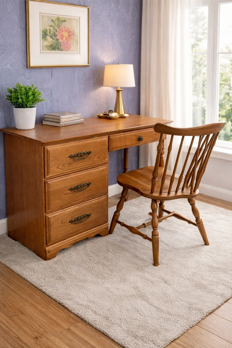 Selling a wooden spindle back chair. It has a classic design and would be a great addition to any home. There are some signs of wear on the seat.
