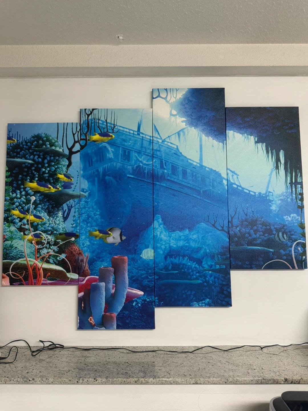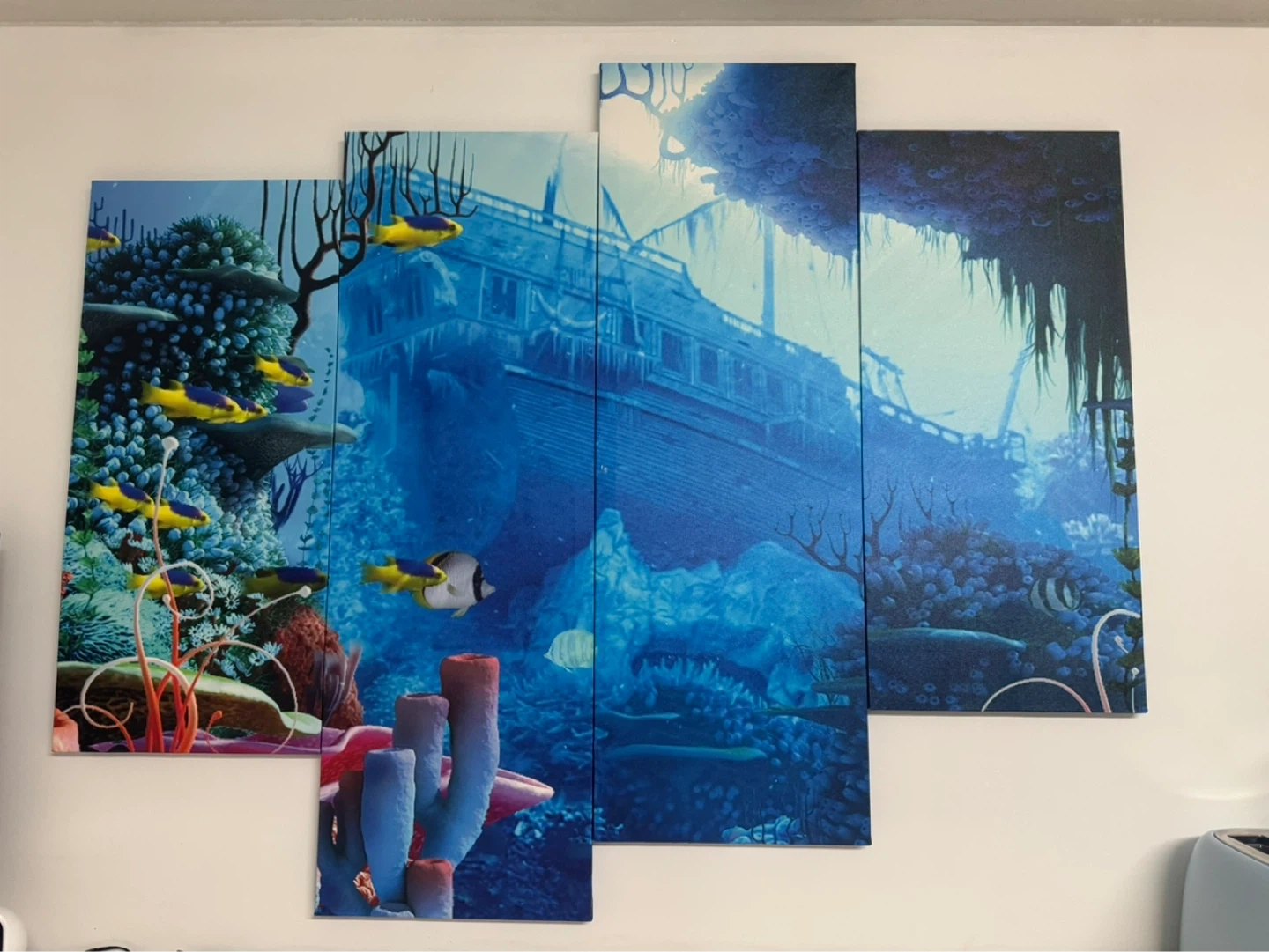 Selling this stunning 5-piece canvas wall art featuring an underwater ocean scene with coral, fish, and a shipwreck design. It adds a calm and modern vibe to any space—perfect for living rooms, bedrooms, or offices.