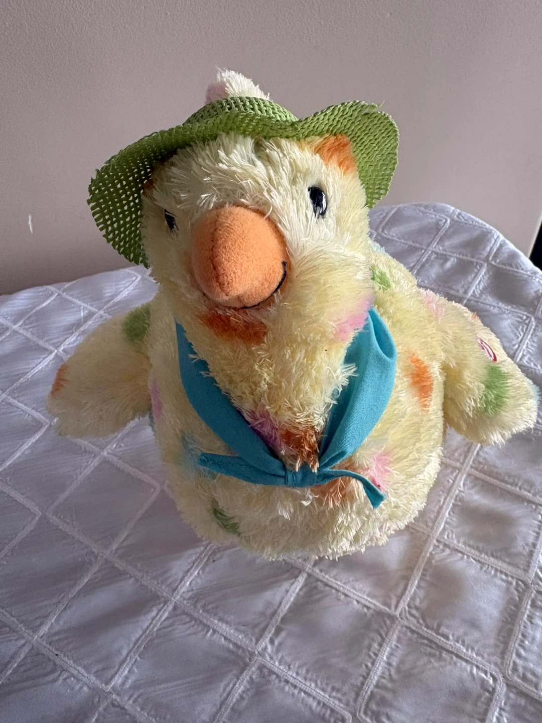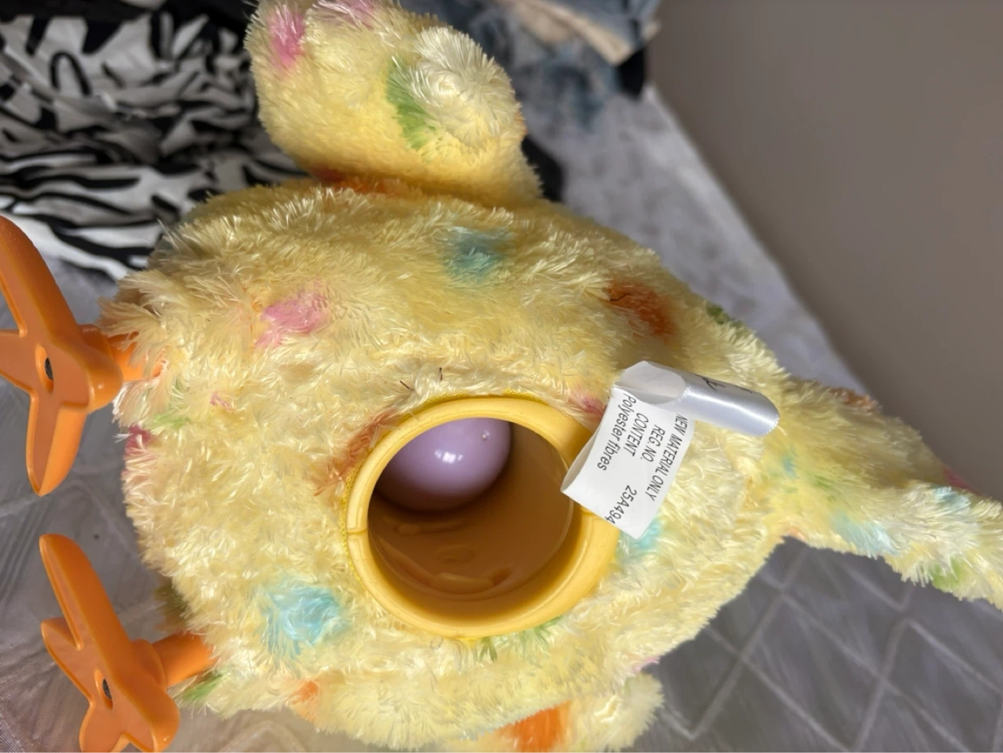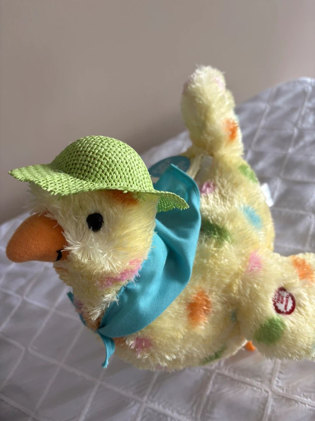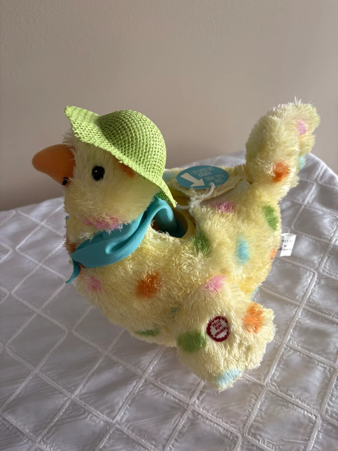 Plush Yellow Chicken hen laying eggs singing and swinging