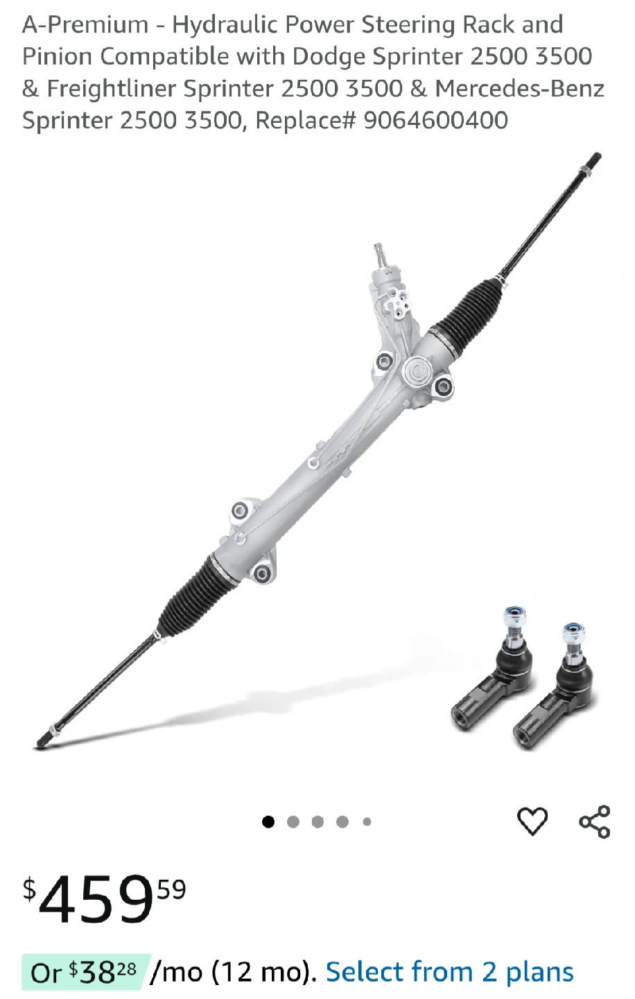 12A-Premium - Hydraulic Power Steering Rack and Pinion Compatible with Dodge Sprinter 2500 3500 & Freightliner Sprinter 2500 3500 & Mercedes-Benz Sprinter 2500 3500, Replace# 9064600400