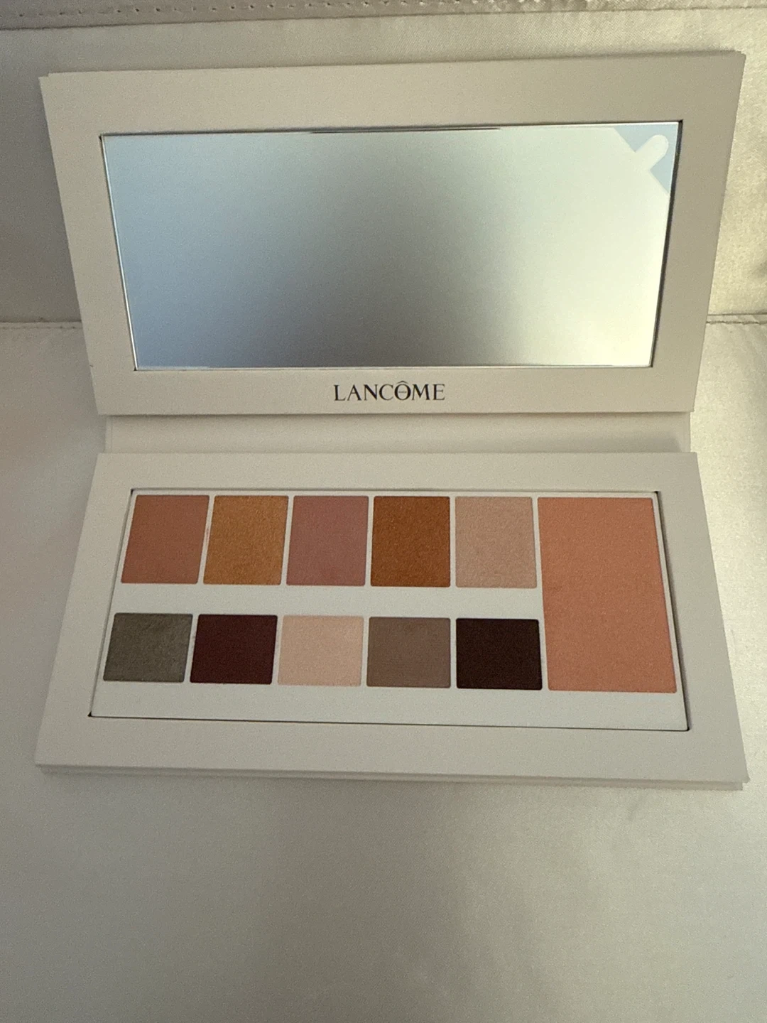 This Lancôme eyeshadow palette features a collection of versatile shades. It includes a built-in mirror for easy application. Perfect for creating various makeup looks!