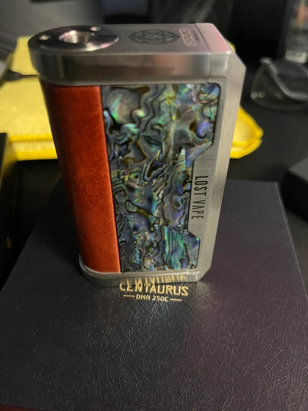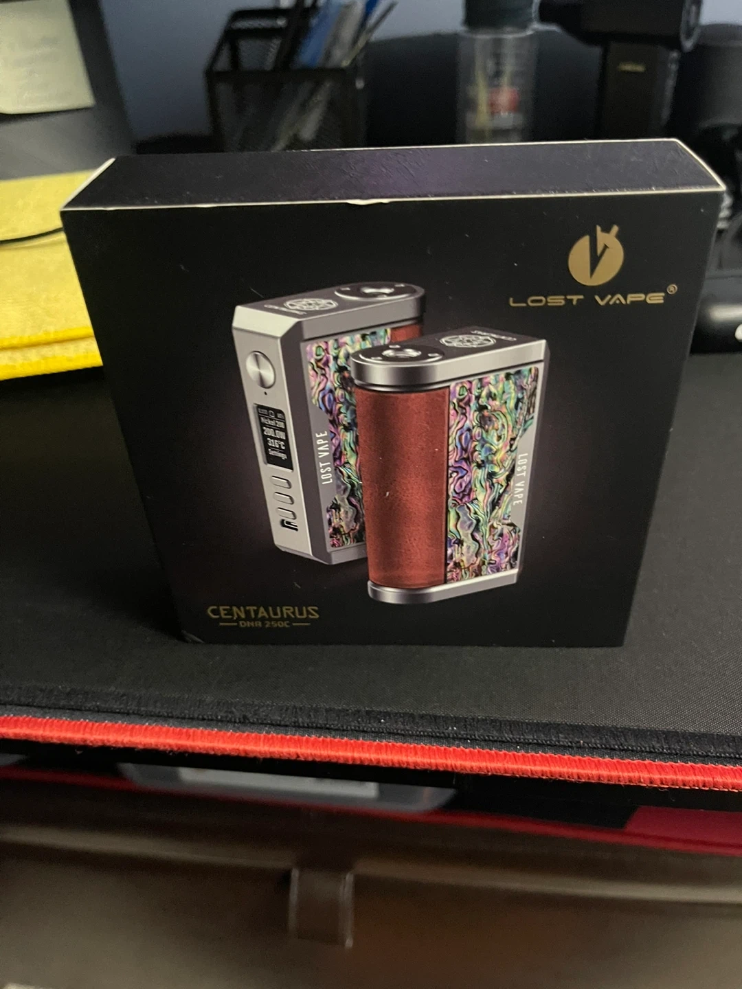 This is the Lost Vape Centaurus DNA 250C mod. It comes with the original box, a USB connecting cable, It's designed and manufactured by Lost Vape Ltd.