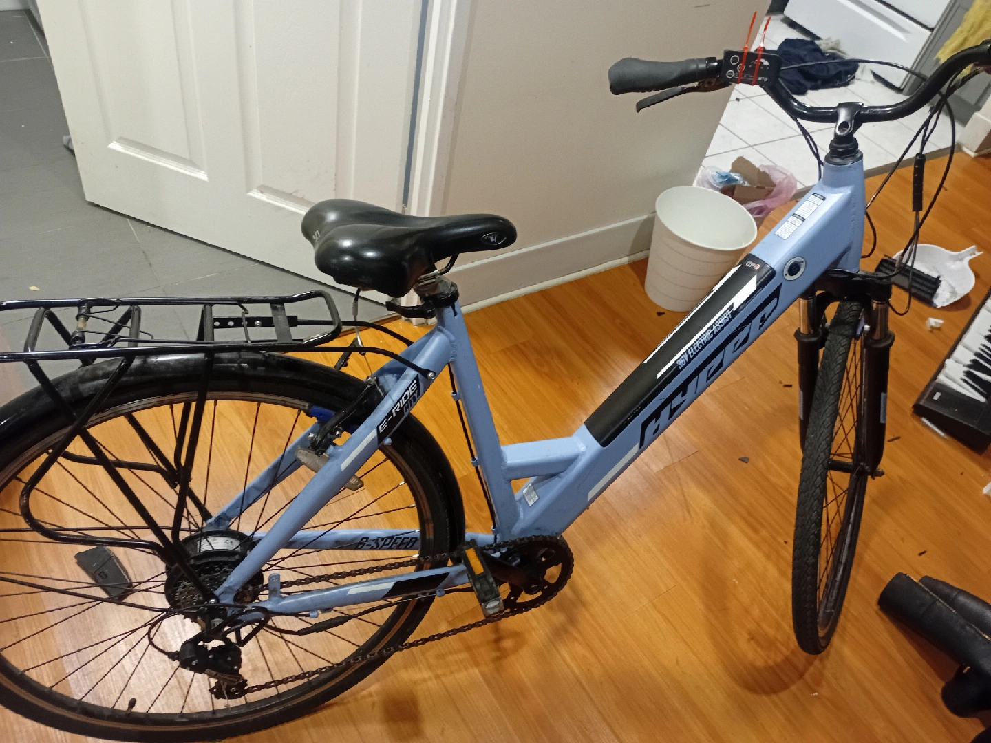 Selling a Hype E-Ride City electric assist bike. It's a light blue colour and looks like it's in good condition. Great for getting around town! Runs perfectly only thing is there is no charger but it's still fully charged . You can buy one at any bike store they're only $40. I'm selling it so cheap because I'm hoping g for a quick sale . I have a family emergency and need to get up north