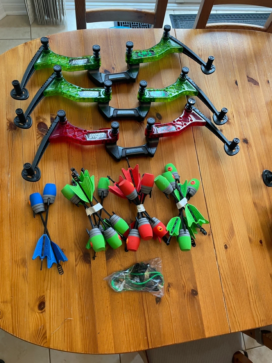 Selling a Hyper Strike archery set! It includes multiple bows in green and red, plus lots of arrows in matching colours. Comes with one set of replacement bungee cords. More can be purchased on Amazon. Great for some outdoor fun! I have two sets of three available
