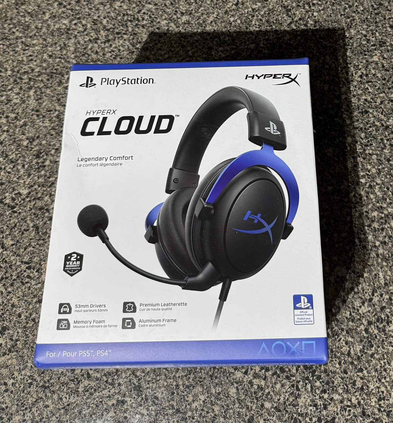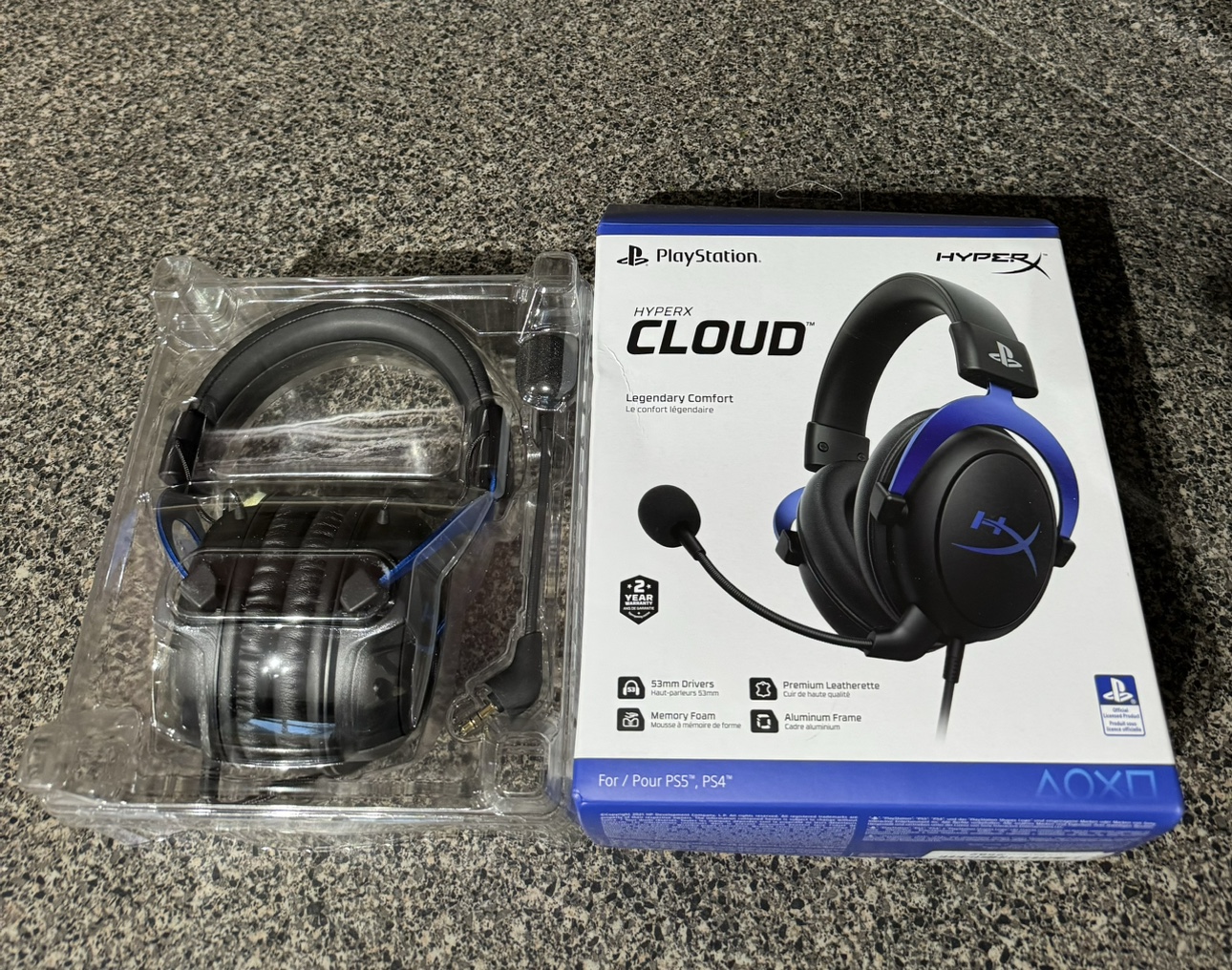 22HyperX Cloud - Gaming Headset, PlayStation Official Licensed Product, for PS5 and PS4, Memory Foam comfort, Noise-cancelling mic, Durable aluminum frame,Black and Blue. Open Box but never used. Selling for $30.