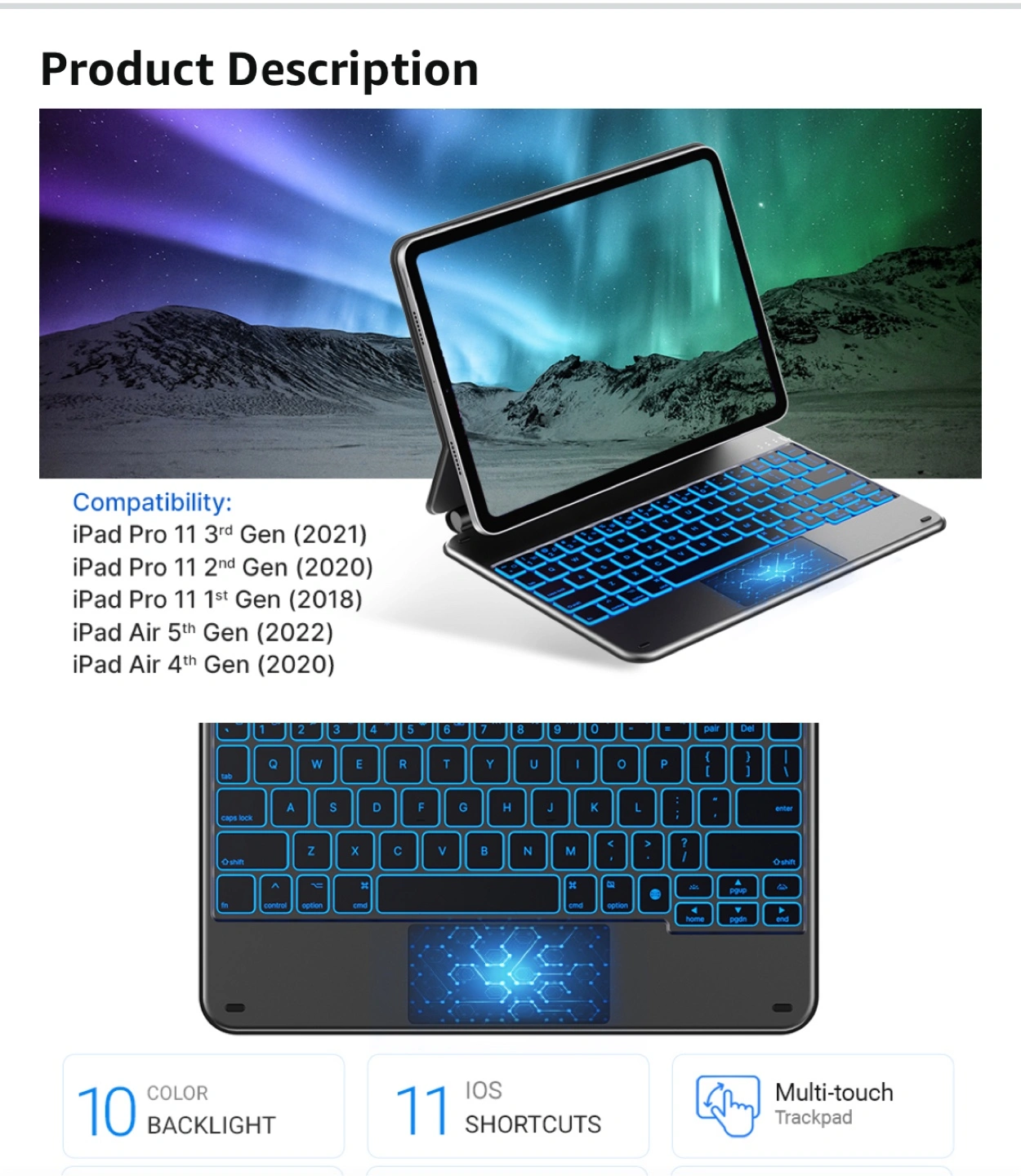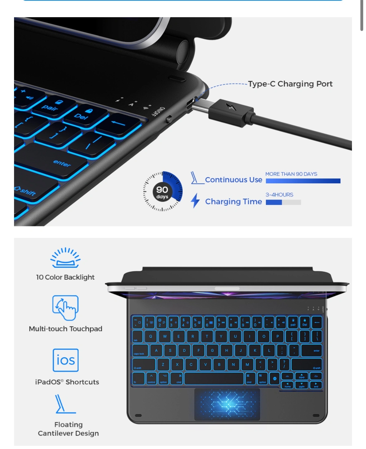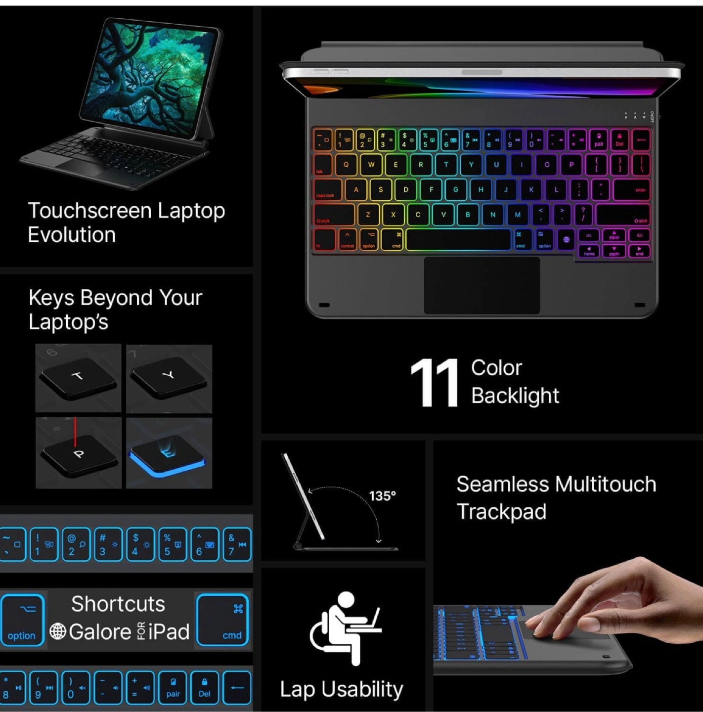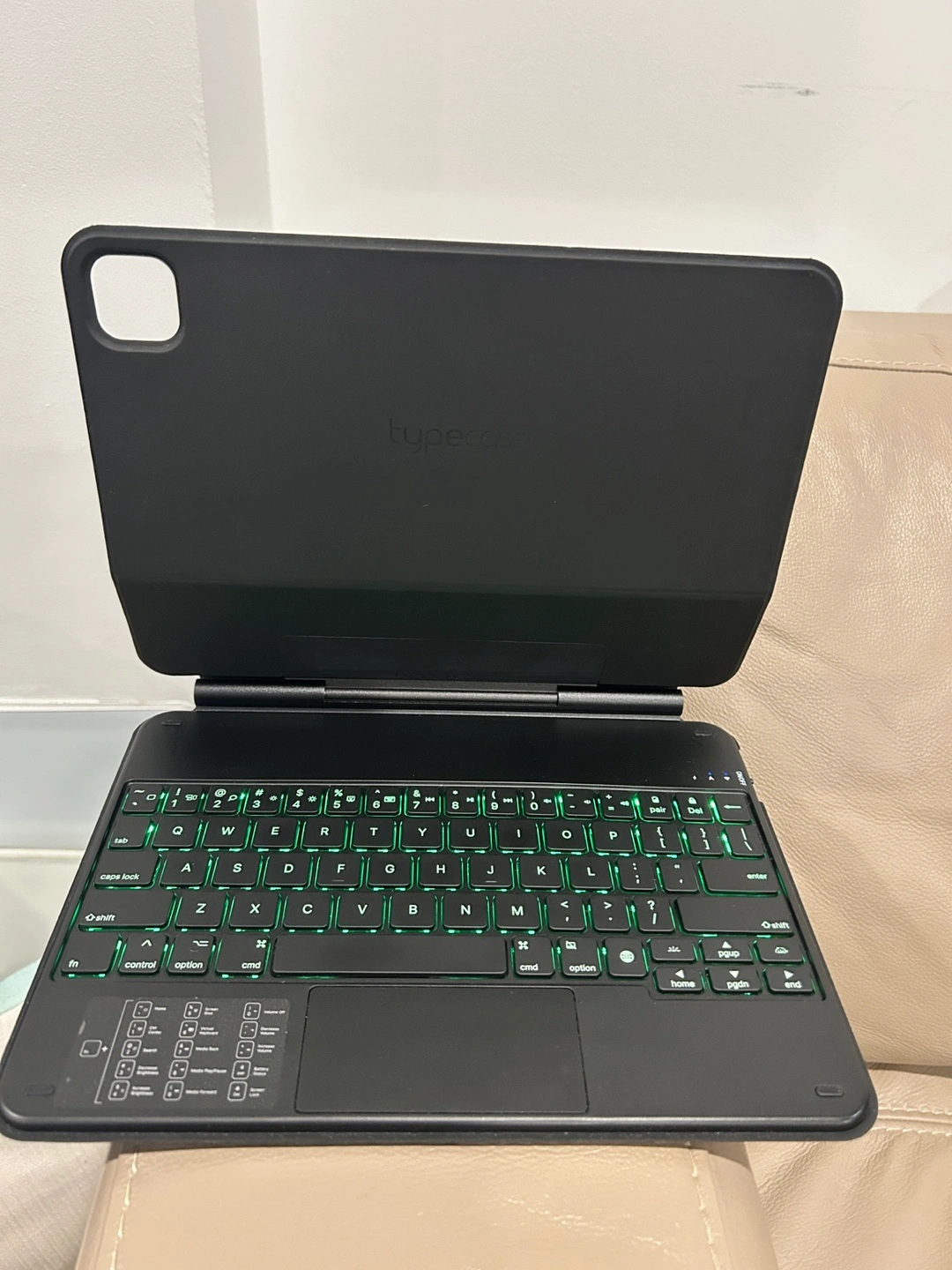 323Selling a like-new Hypercase Edge iPad Keyboard Case with Trackpad! It's designed for the iPad Pro 11 inch and iPad Air 10.9 inch. It features ergonomic keys with 10-color backlight, giving you a comfortable typing experience even in low-light conditions. The multi-touch trackpad enables you to scroll, swipe, and navigate your iPad in a whole new way. Transform your iPad into a laptop within seconds! Comes with the original box.